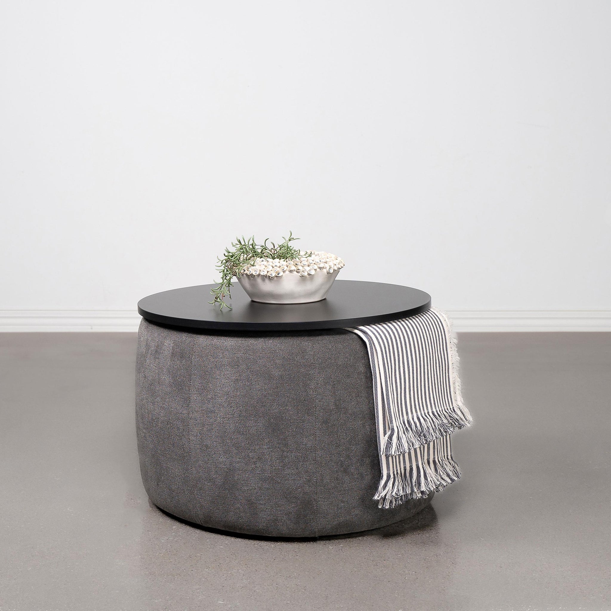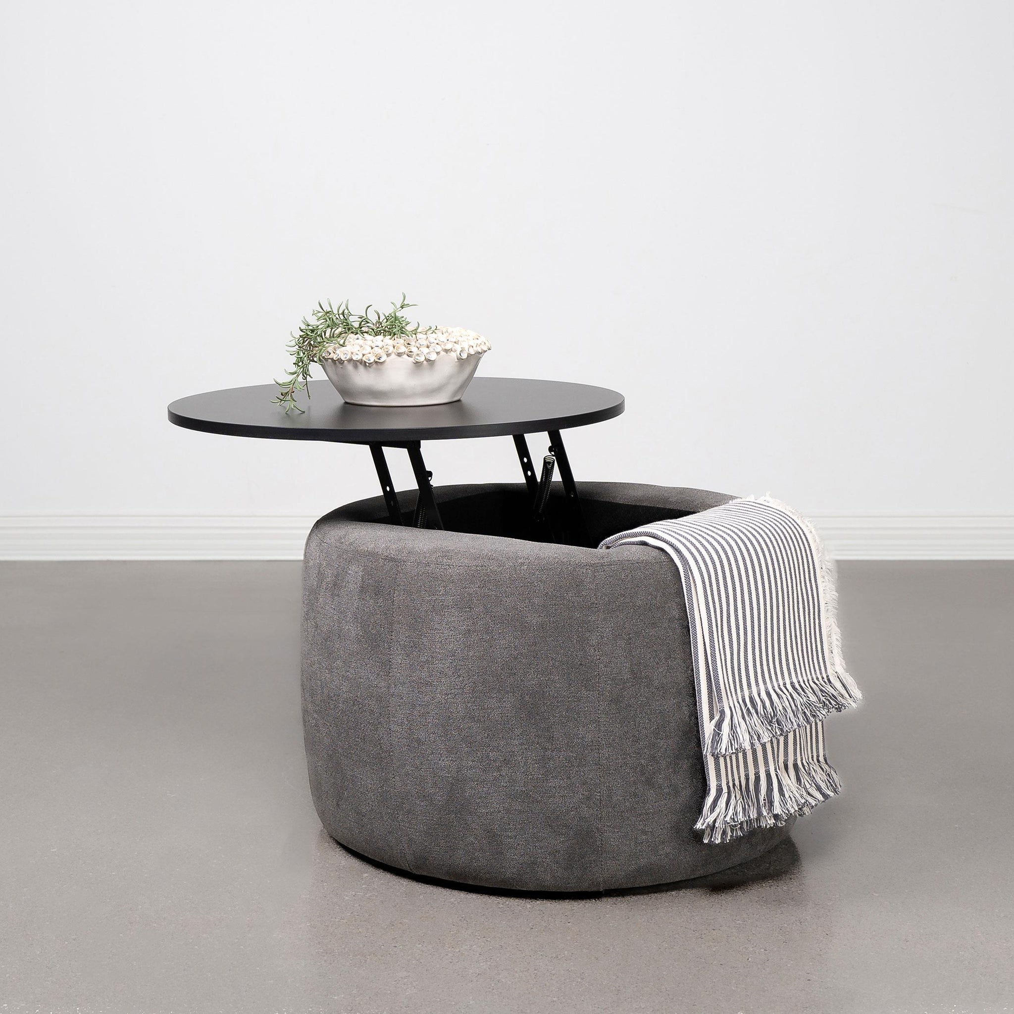 Coaster Furniture 910147 Tesoro Round Upholstered Lift Top Storage Ottoman Grey