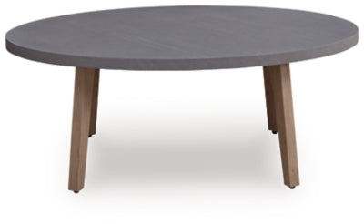 High style, meet sleek durability. This outdoor coffee table combines a contemporary silhouette with must-have longevity, so you can bring your eye for design alfresco. It impresses with the refined appeal of wood-look aluminum and a stone-look top, expertly completing your outdoor seating area.