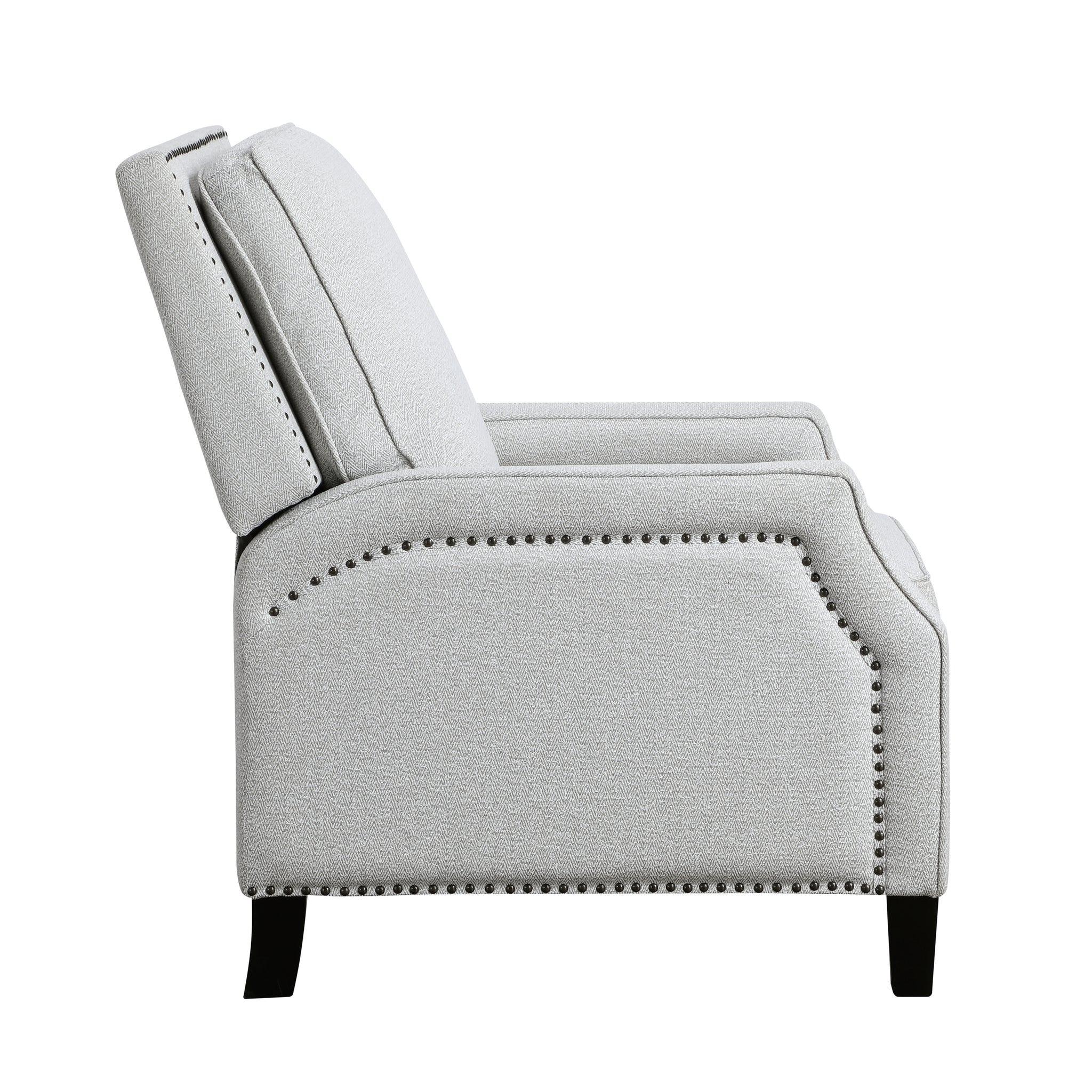 With a reclining mechanism that is engaged with your push, settling into the Berenson Collection is done so with ease. The tailored profile of the push back reclining chair is covered in coconut-hued chenille and features nail head trim, lending to its transitional style, creating the perfect complement to your home’s décor.