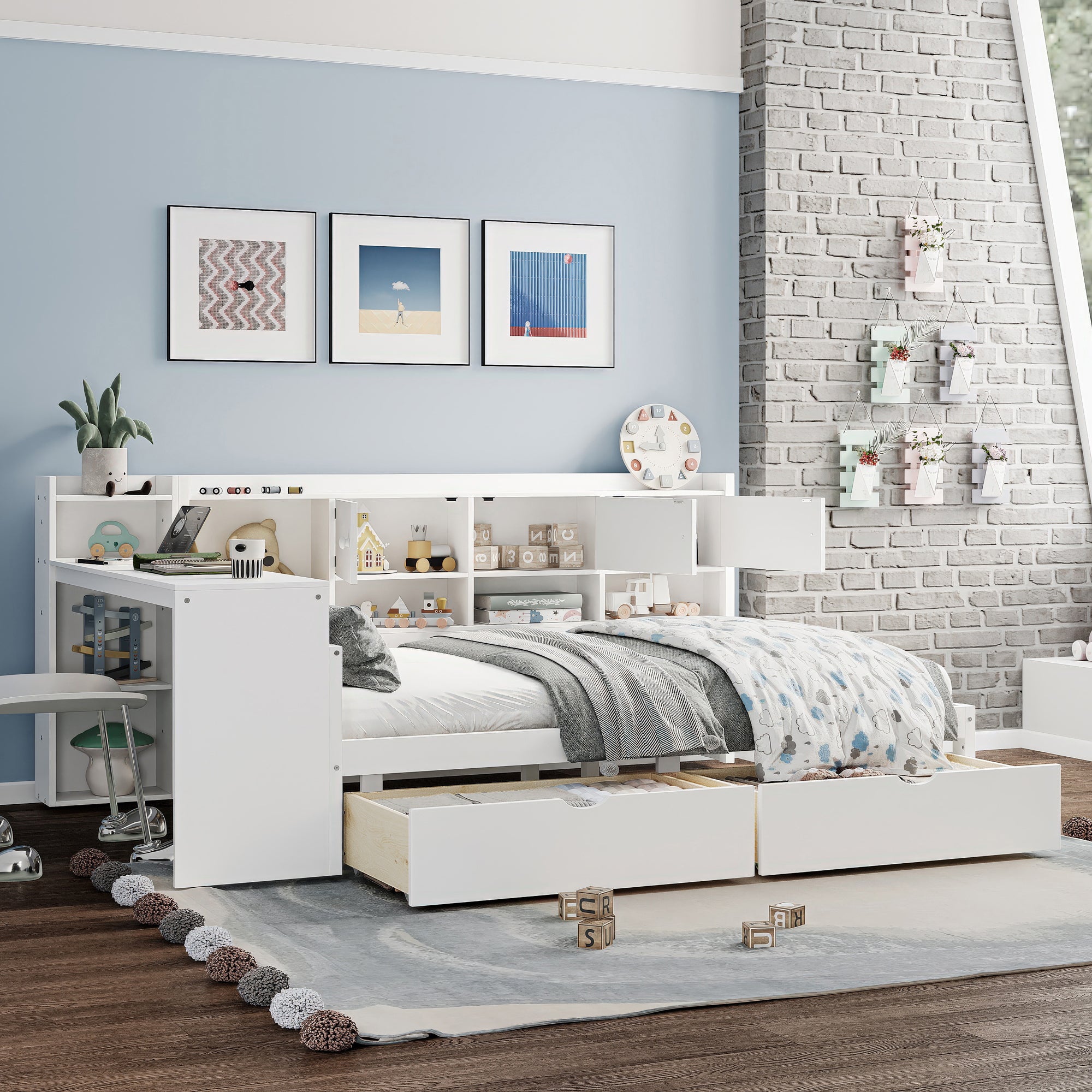 Includes 7 side cabinets and 2 spacious drawers under the bed—perfect for organizing bedding, clothes, books, toys, or other essentials.