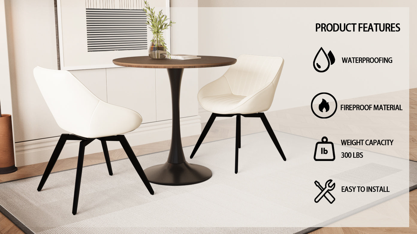 Bring timeless elegance and modern comfort to your dining space with this 3-Piece Round Tulip Dining Table Set. Designed for contemporary homes and small spaces, this set includes one round table and two cushioned PU leather dining chairs, combining mid-century style with practical everyday comfort.