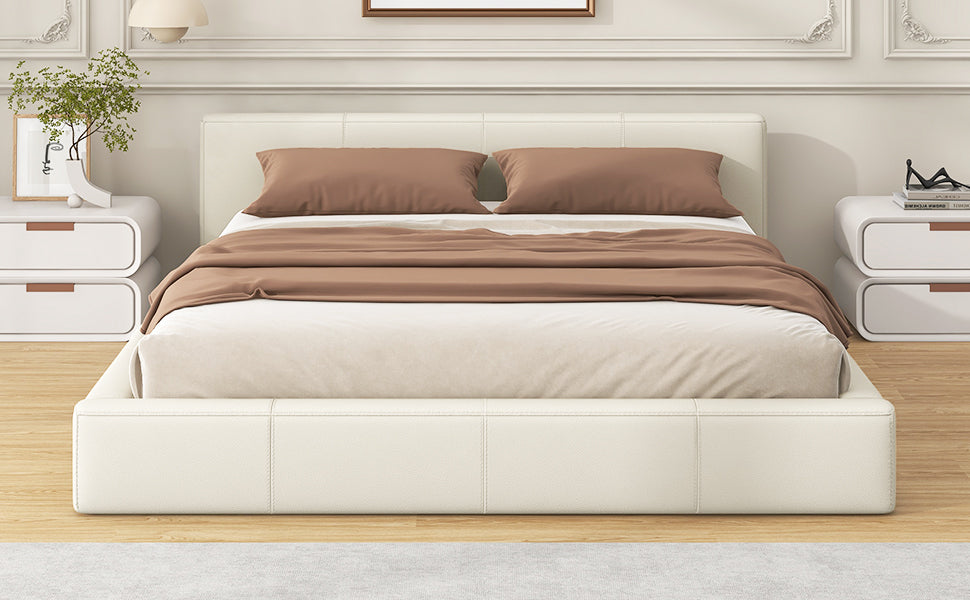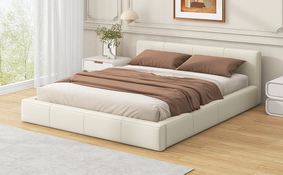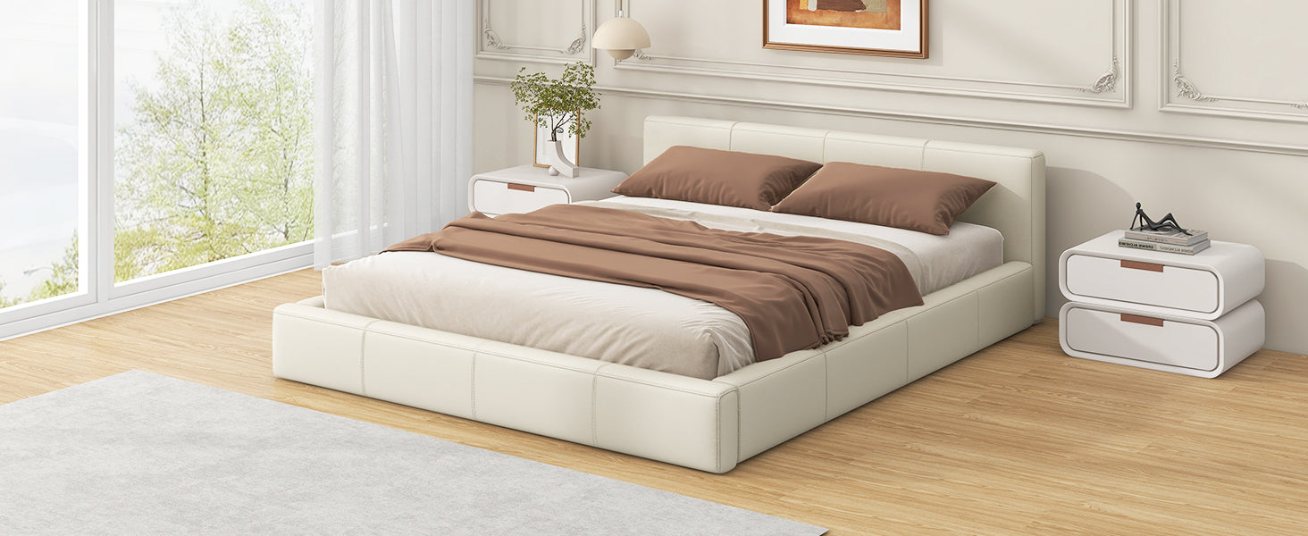 Transform your bedroom into a haven of style and comfort with this Stylish Beige Upholstered Bed. Designed to seamlessly blend with any decor, its minimalist silhouette and sophisticated beige faux leather add a touch of modern elegance. Perfect for contemporary, industrial, or traditional themes, this bed is crafted for durability and stability with high-quality birch and engineered wood. Available in Full, Queen, and King sizes, it accommodates various room dimensions and sleeping preferences. Easy to assemble and maintain, it's an ideal choice for enhancing your sleeping experience.