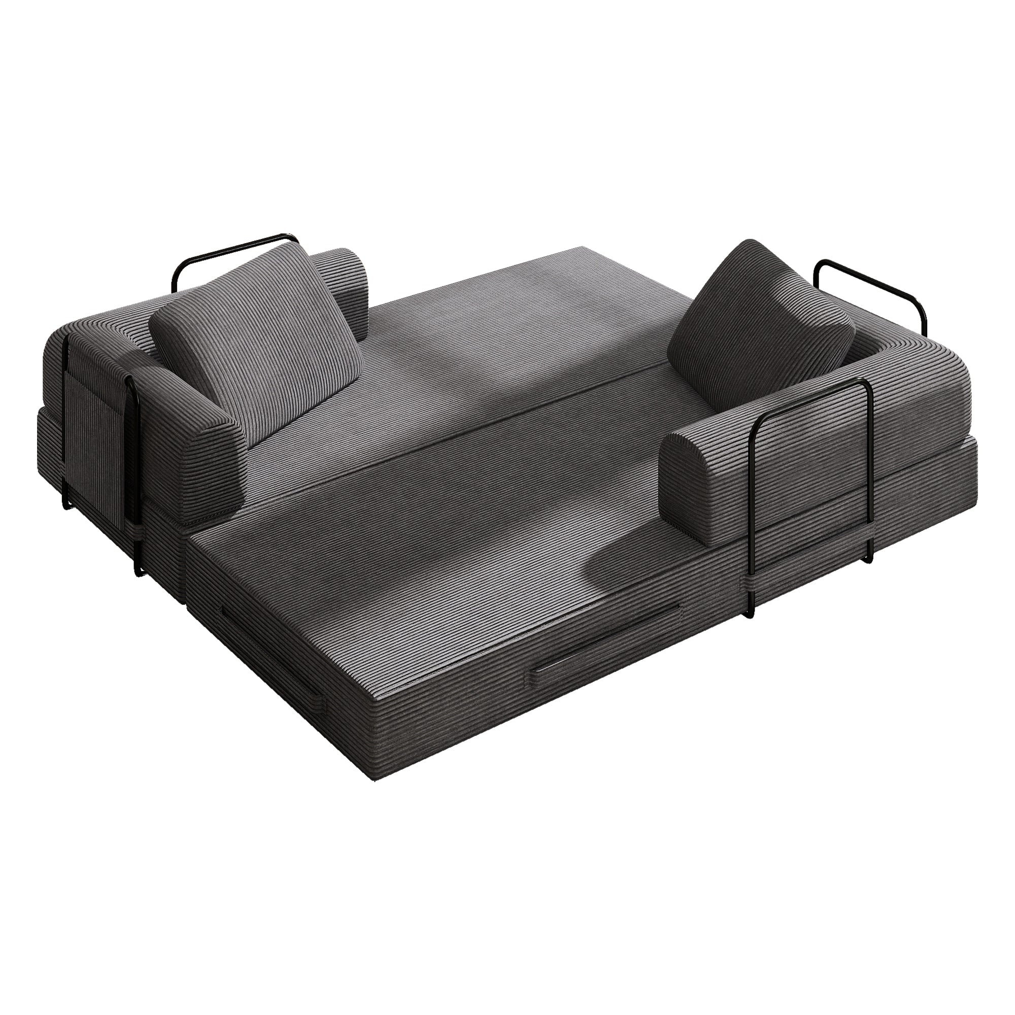 Corduroy Convertible Sleeper Sofa Bed with Pillow -Dark Gray