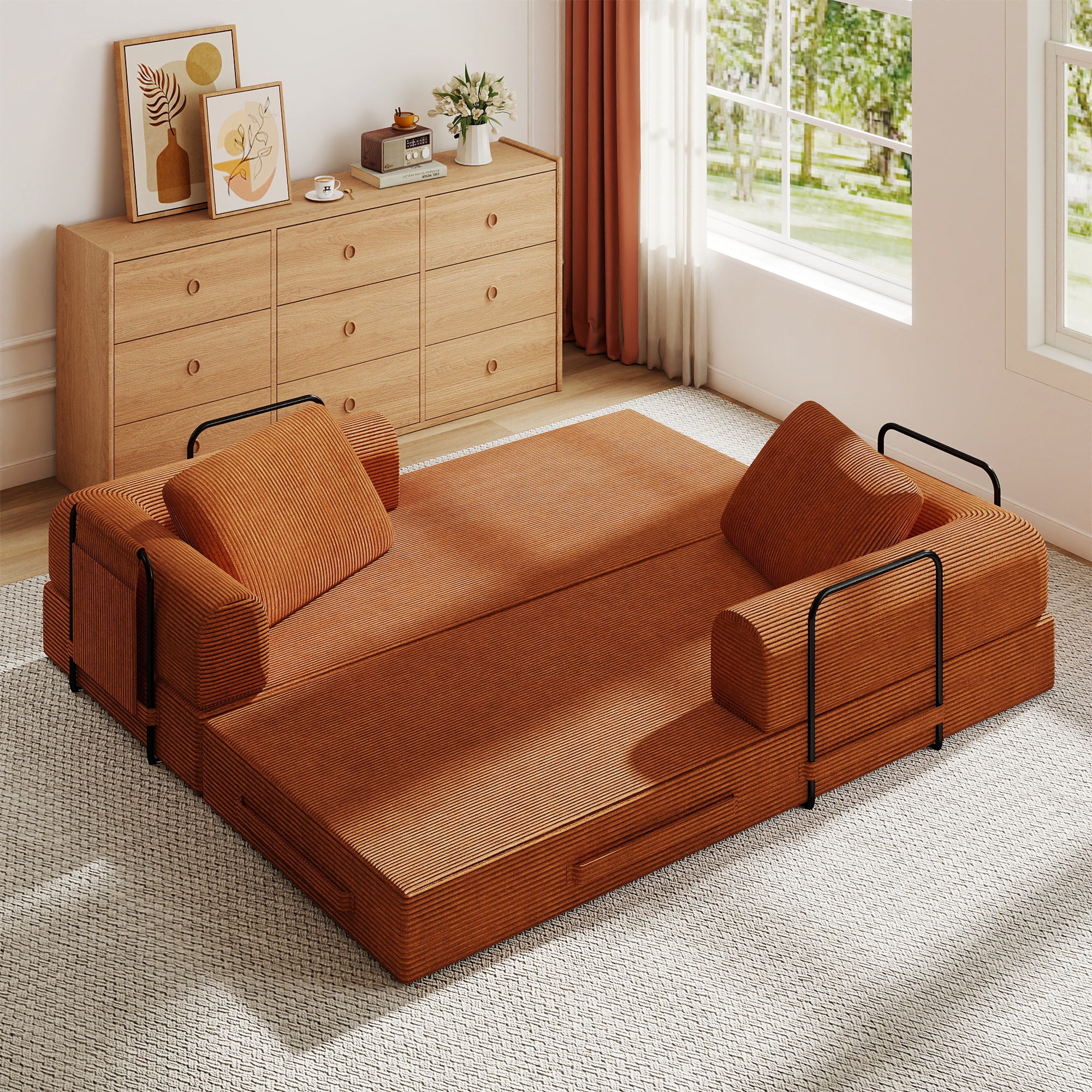 Corduroy Convertible Sleeper Sofa Bed with Pillow – Orange