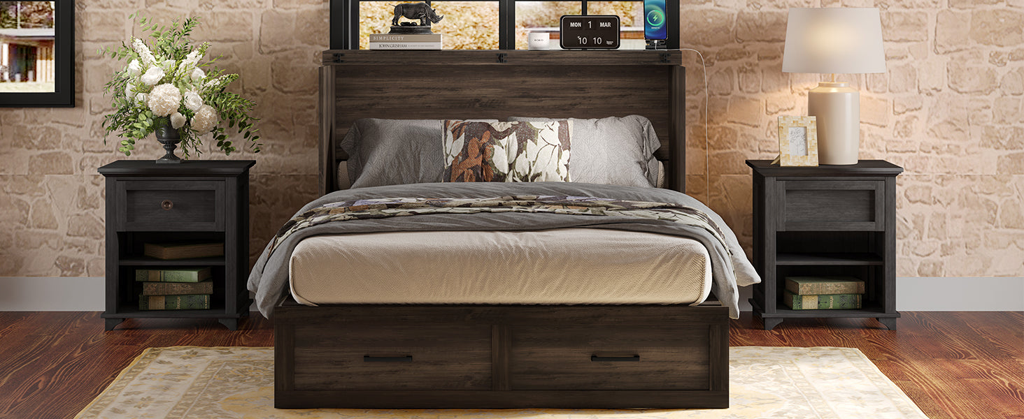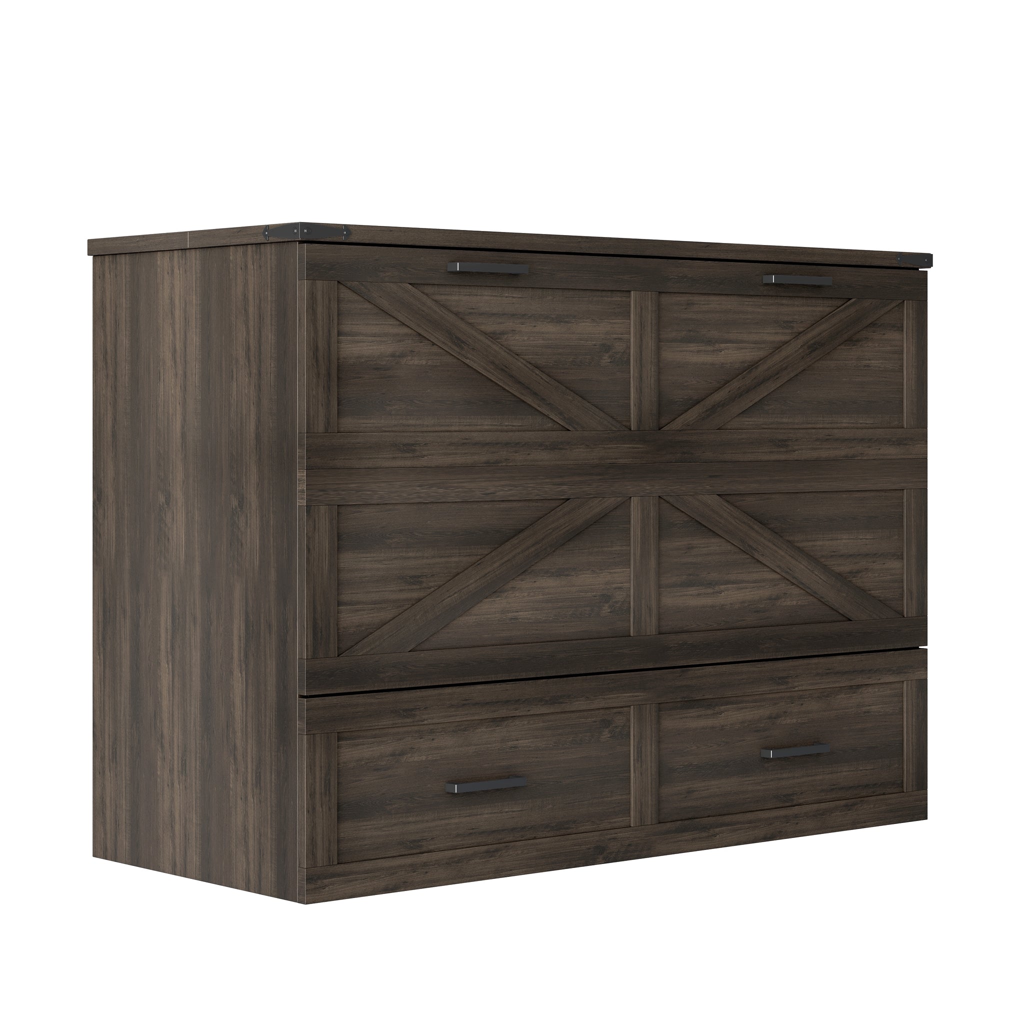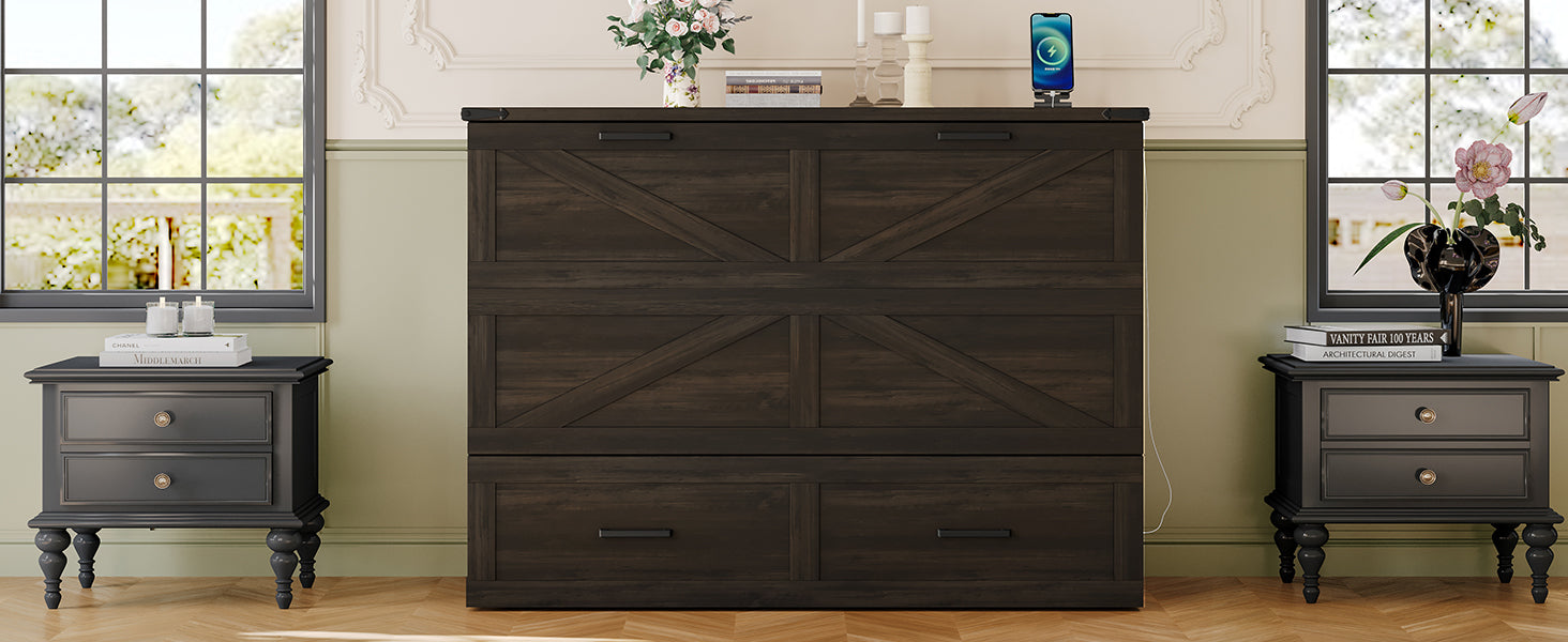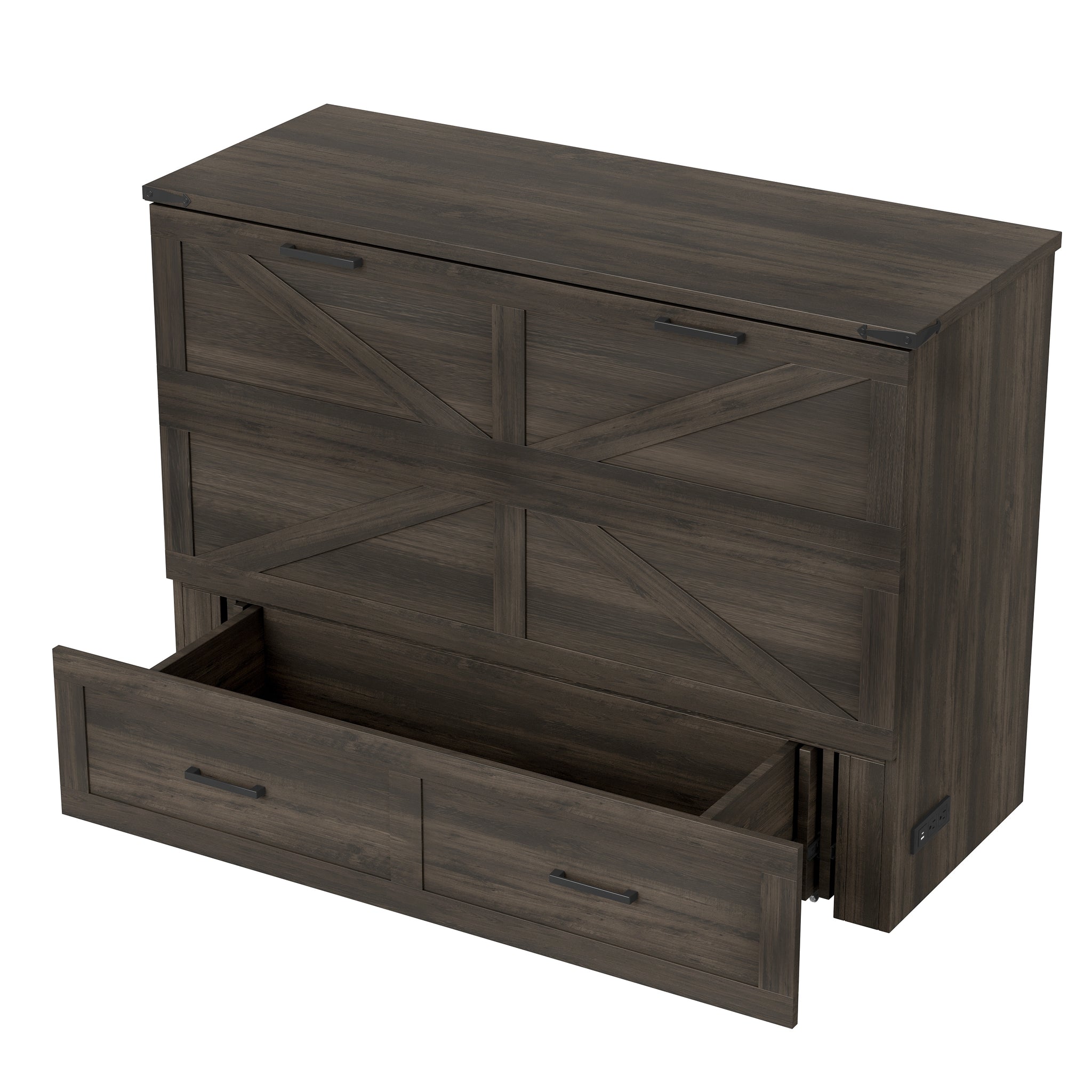 Maximize your space with the Murphy Cabinet Bed, a stylish and functional solution for guest rooms, small bedrooms, or multipurpose spaces. This bed features a foldable platform design, allowing you to transform it from a compact cabinet into a comfortable sleeping space in seconds. Equipped with a built-in charging station, it offers convenient access to power for your devices, making it perfect for modern living. The two spacious storage drawers provide ample room for bedding, clothing, or other essentials, helping you keep your space organized and clutter-free. Crafted from high-quality materials, the bed showcases a charming farmhouse aesthetic with a durable finish that complements a variety of décor styles.