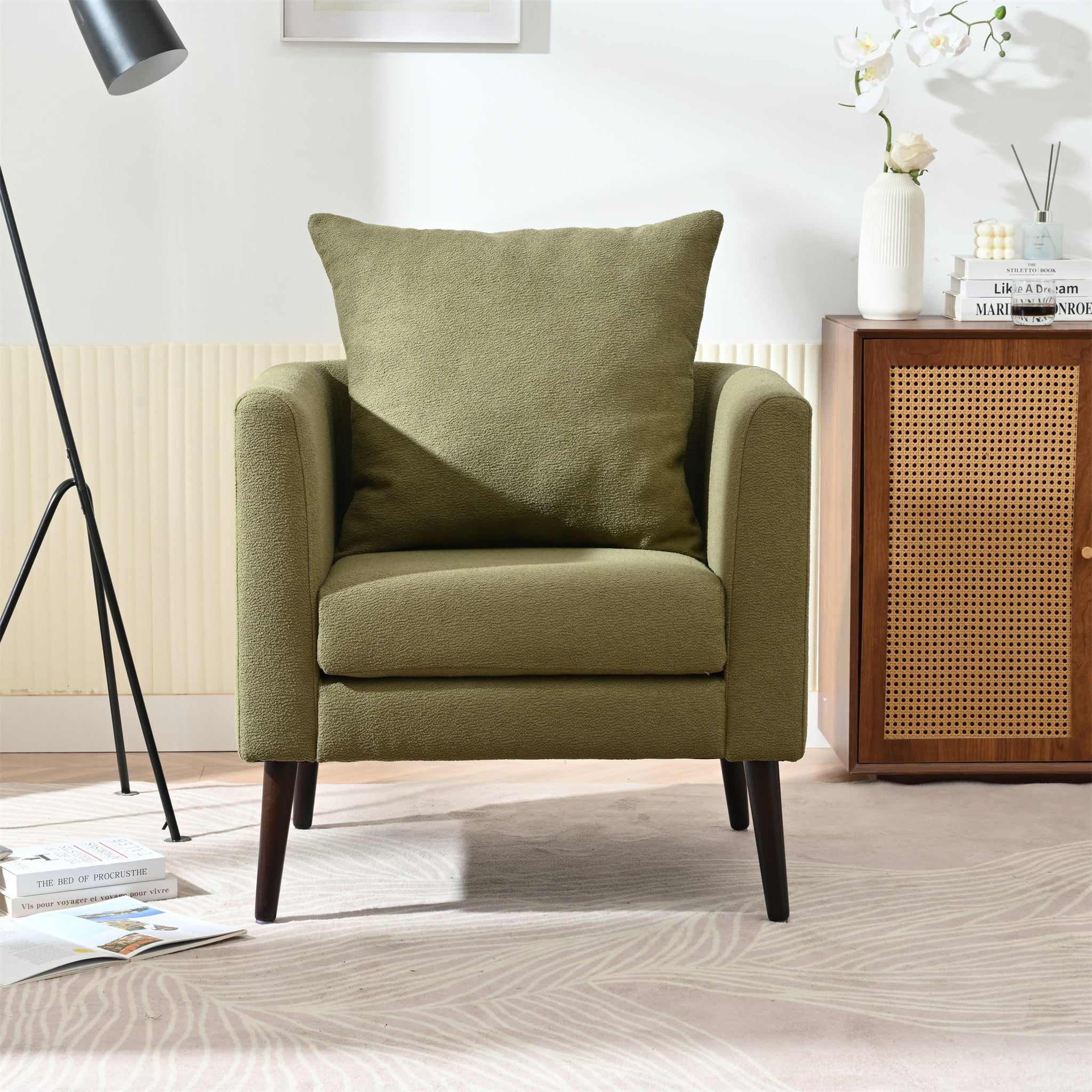- This living room chair is supported by beautifully tapered wooden legs for an elegant look and durable construction. Due to the wood frame construction, the accent chair can withstand 275 pounds(static load capacity)which equals the weight of two adults, ensuring the sturdiness of our comfy chair. The fabric is not easy to pill and the cushion is not easy to deform with long-term use.