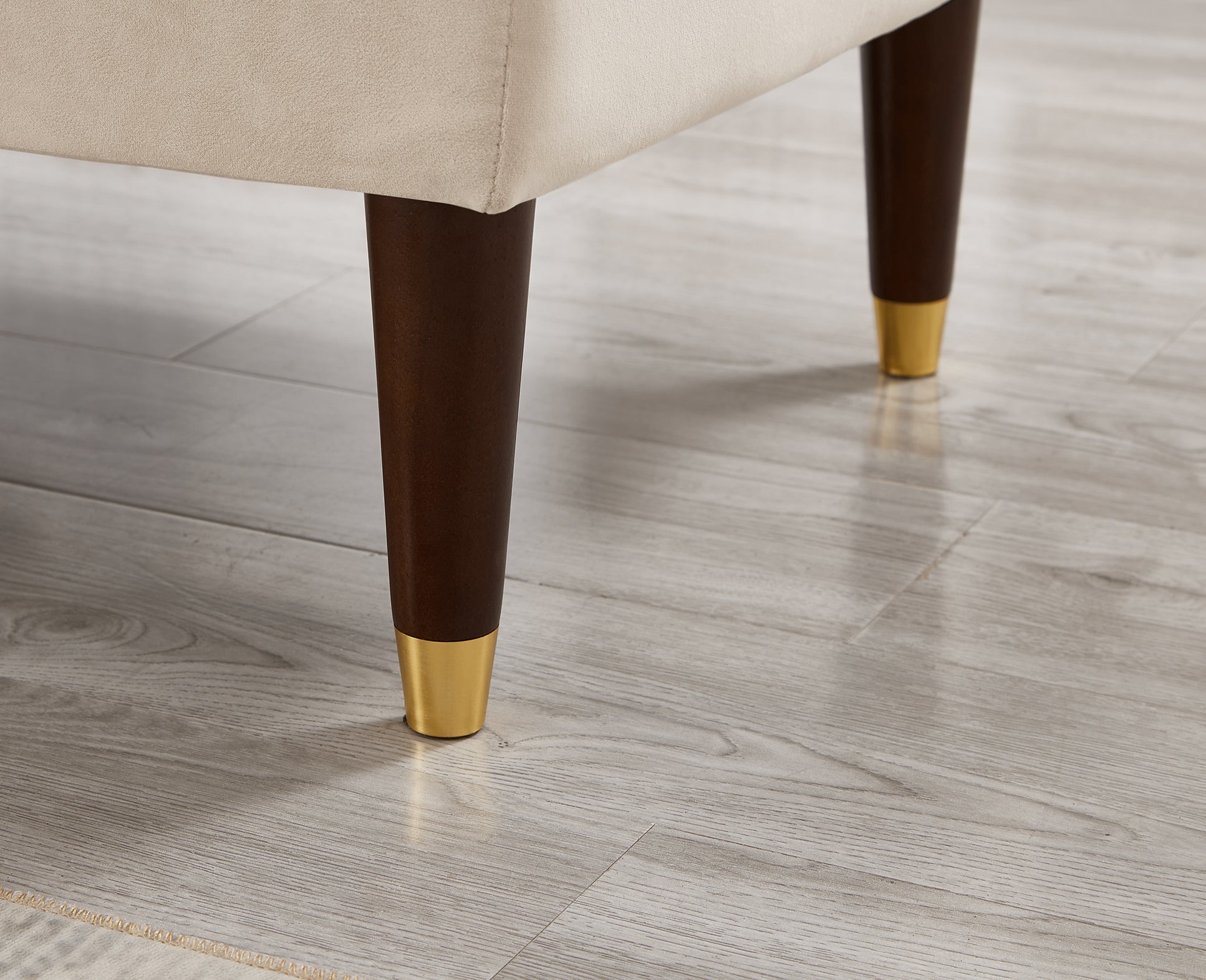 • SOLID WOOD LEGS: The four legs of the lounge sofa are made of rubber wood material, with a gold metal cover at the end side, providing a unique embellishment to the whole lounge sofa. The solid wood leg have anti slip pads at the bottom to prevent the sofa from sliding and protect the floor from scratches.