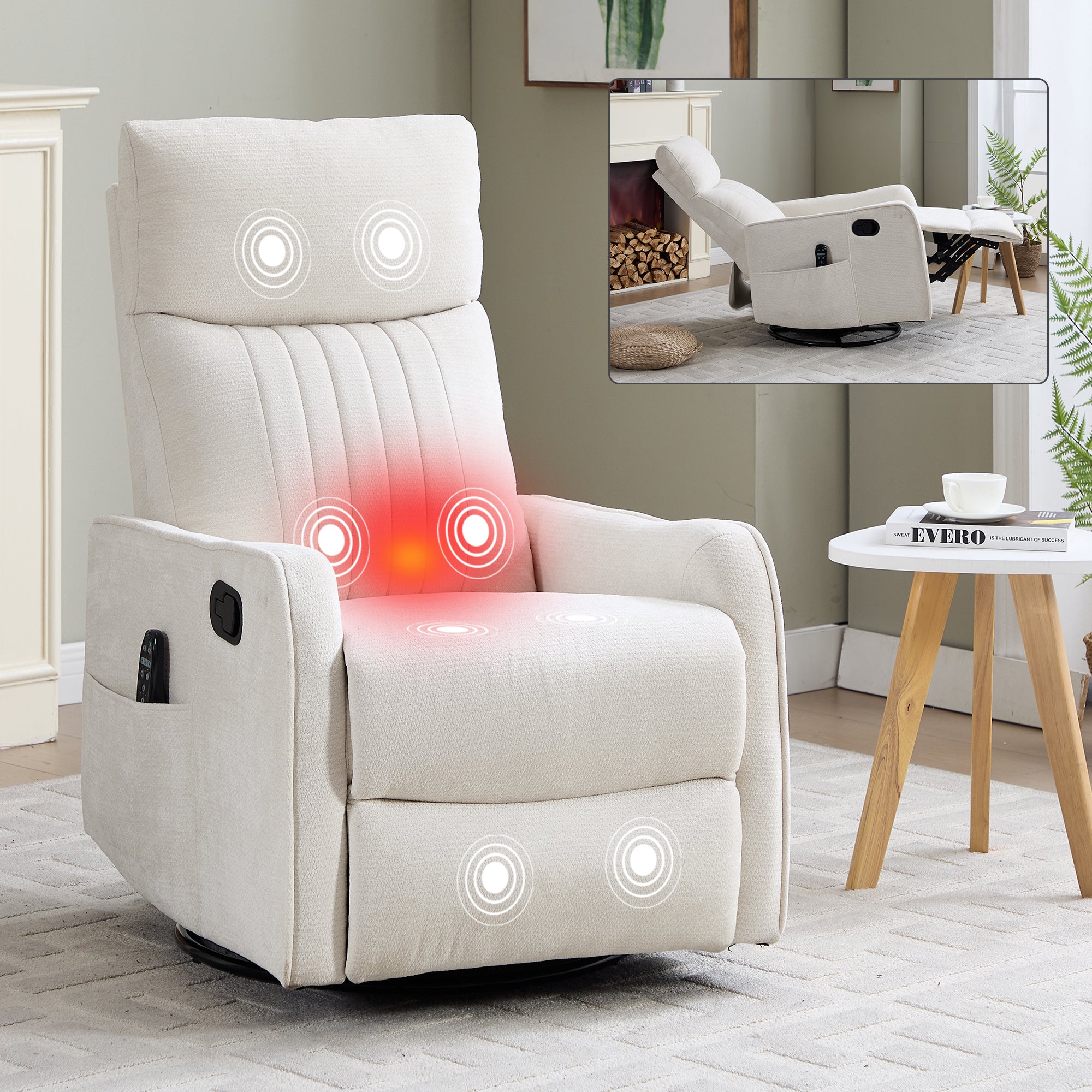 Beige Heat Massage Manual Recliner Chair with Rocker and Swivel in Fabric