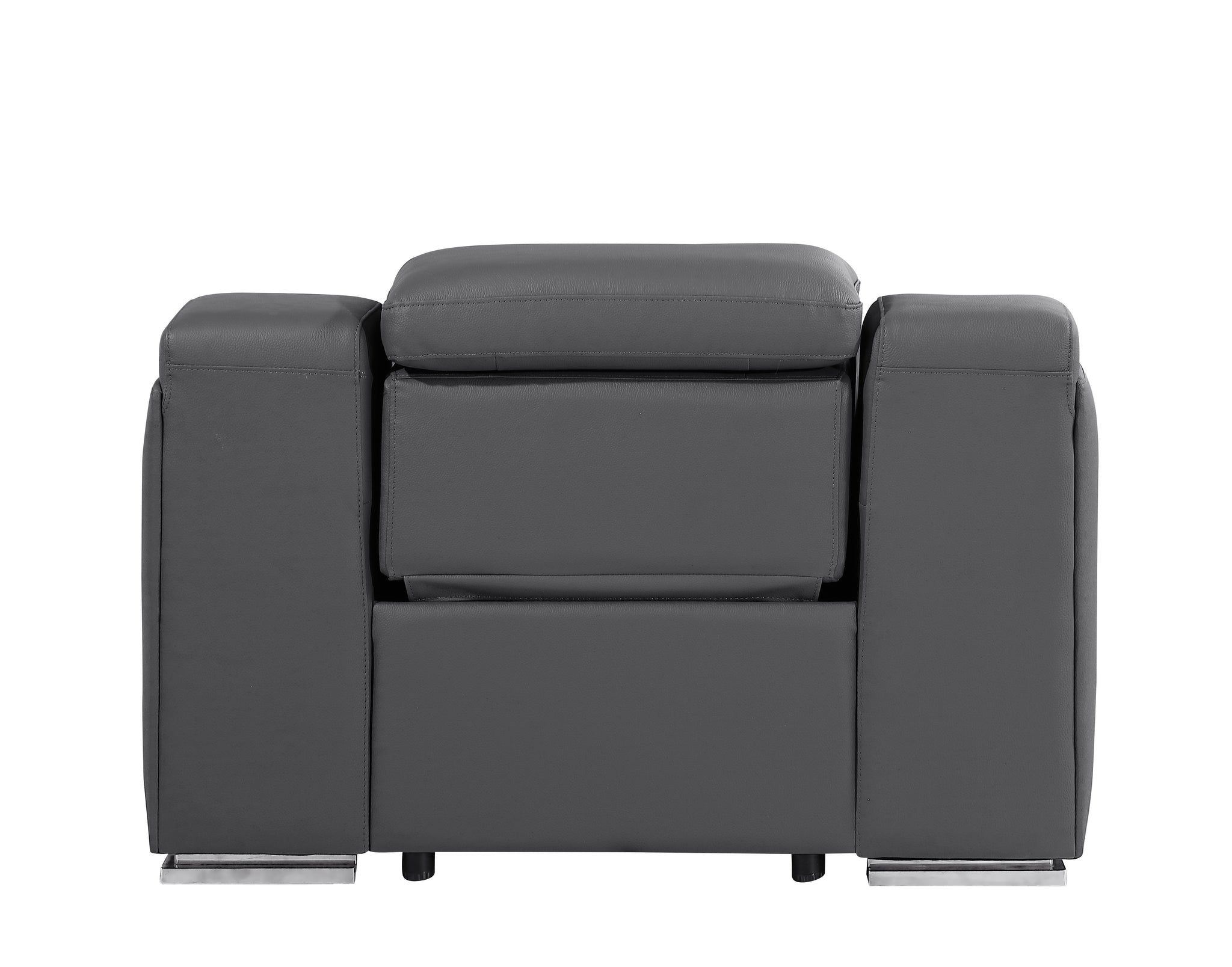 DivanItalia 1116 Dark Gray Italian Leather Power Reclining Chair with Power Headrests