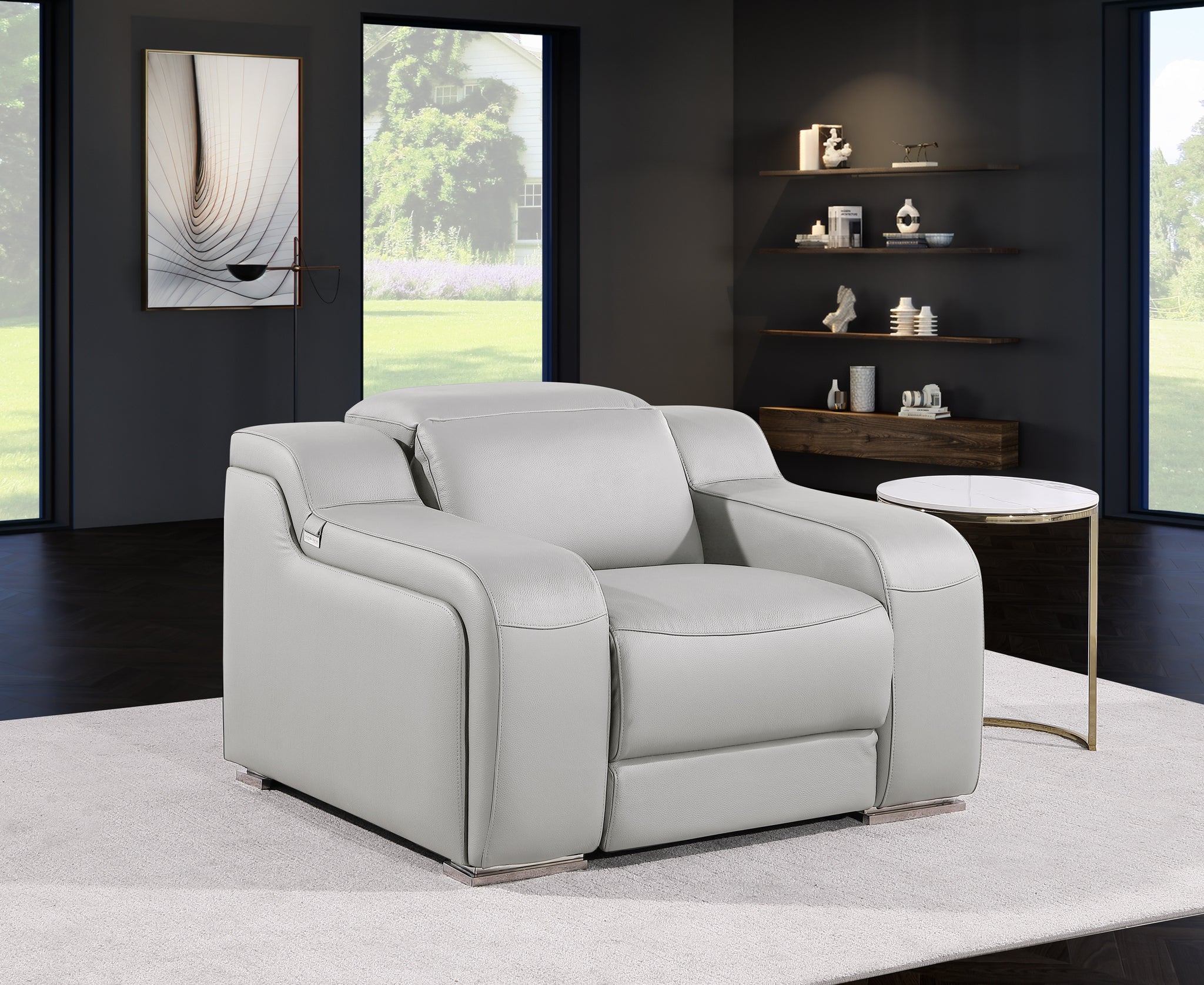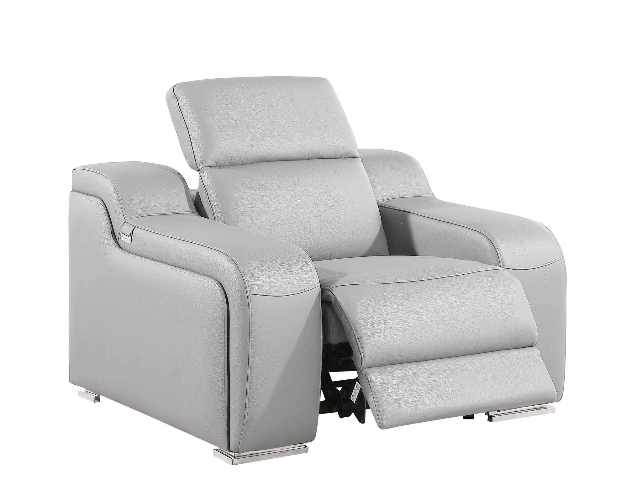 DivanItalia 1116 Light Gray Italian Leather Power Reclining Chair with Power Headrests