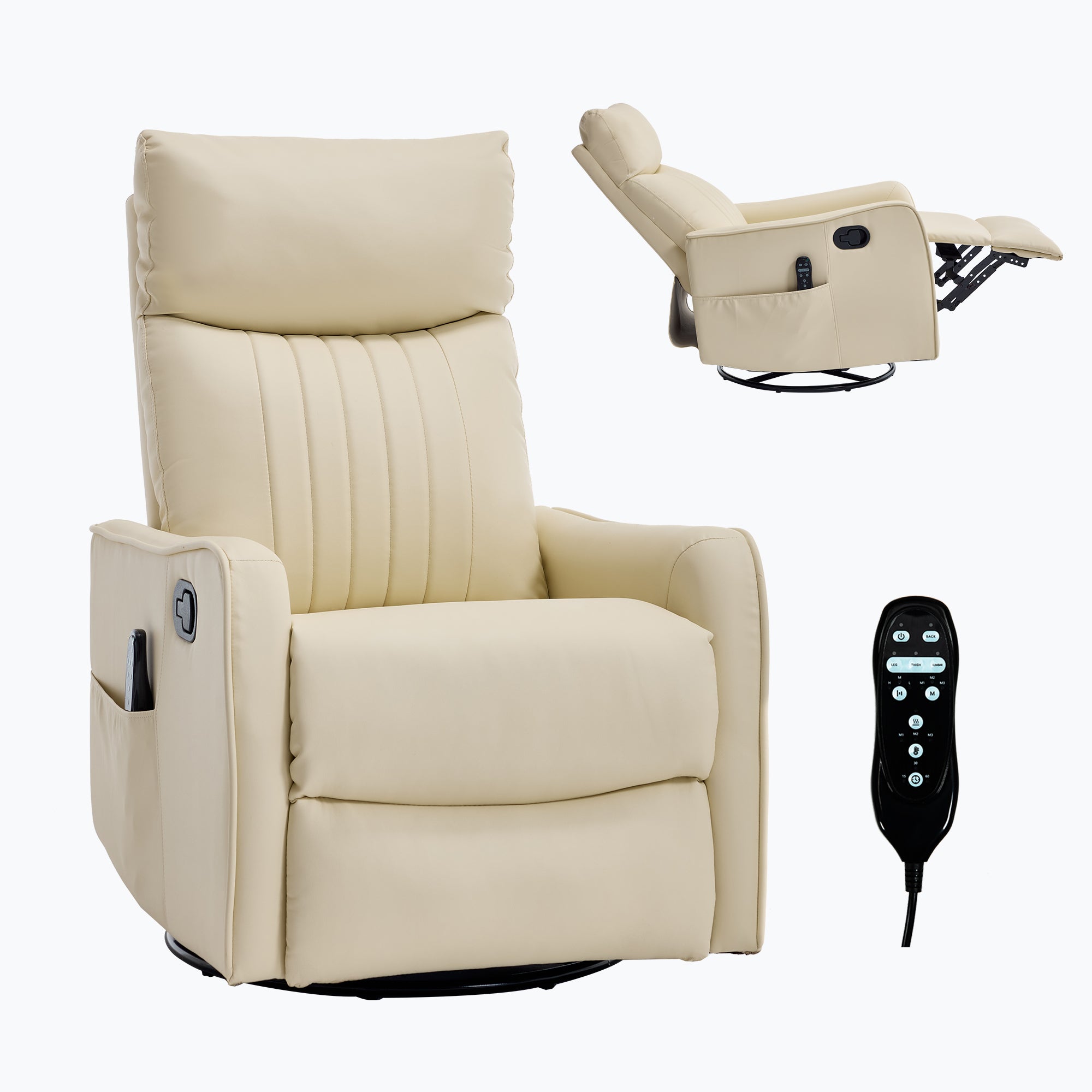 Beige Heat Massage Manual Recliner Chair with Rocker and Swivel in Faux Leather for Living Room
