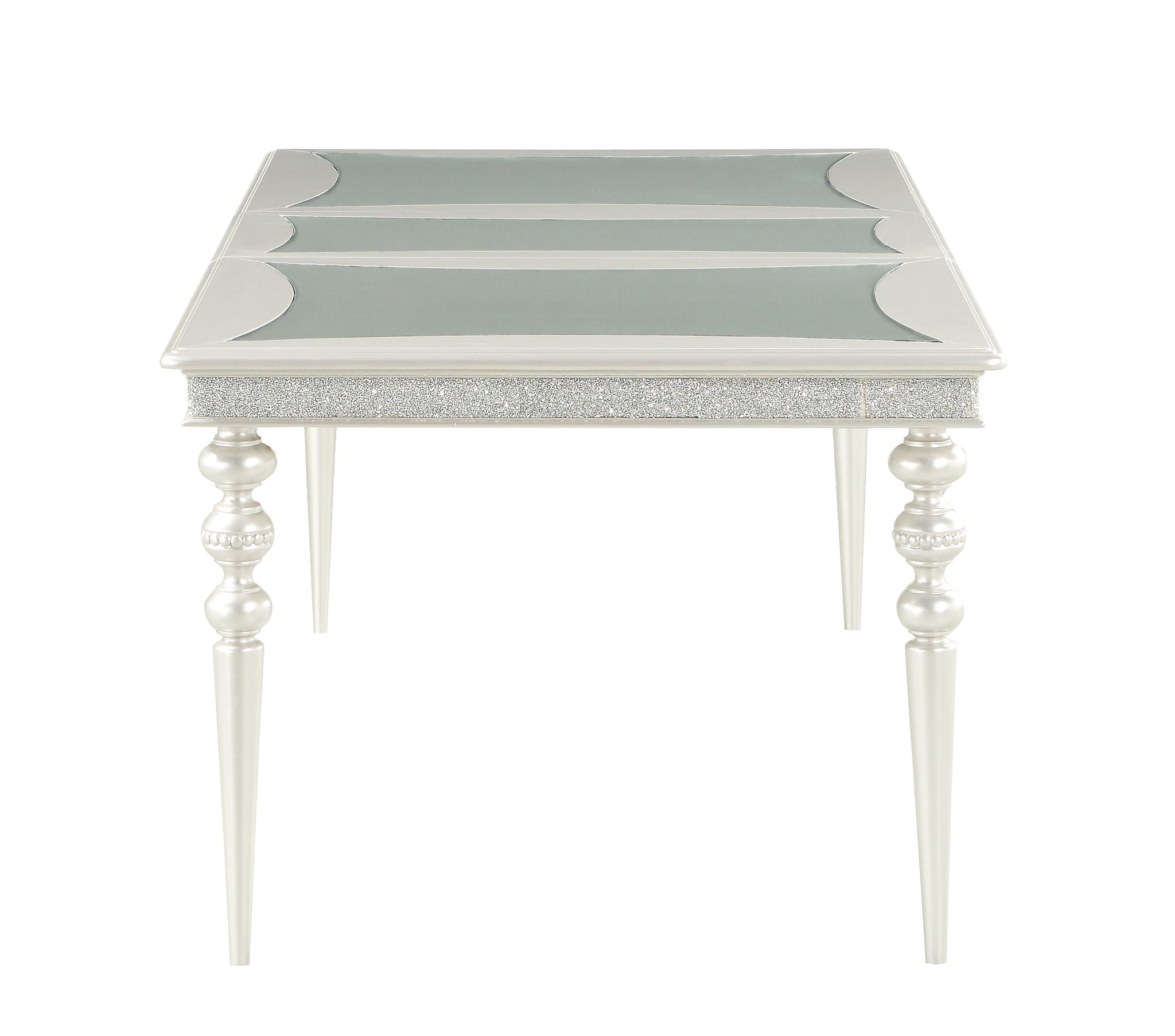• Extendable Design: The Maverick Platinum Finish Dining Table features a removable 20-inch leaf, allowing you to transform the rectangular table to accommodate more guests. This makes it perfect for formal dining or large family gatherings.