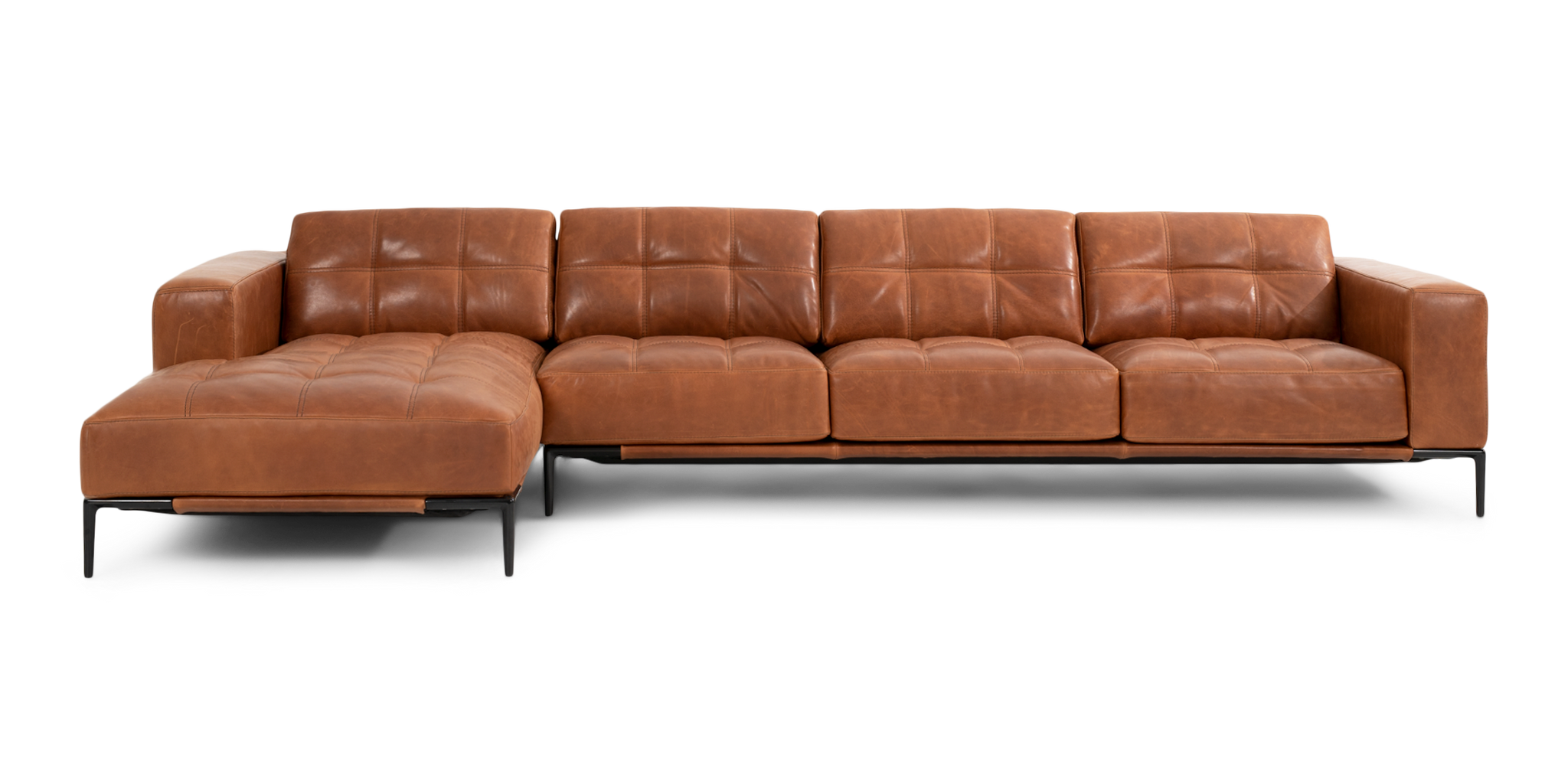 Double-needle quilting combined with single-needle top-stitching adds a dramatic spin to this collection. Choose from a variety of contrasting thread colors or match it to your choice of upholstery. Barcelona sits atop aluminum legs in your choice of black, bronze, or a polished finish.