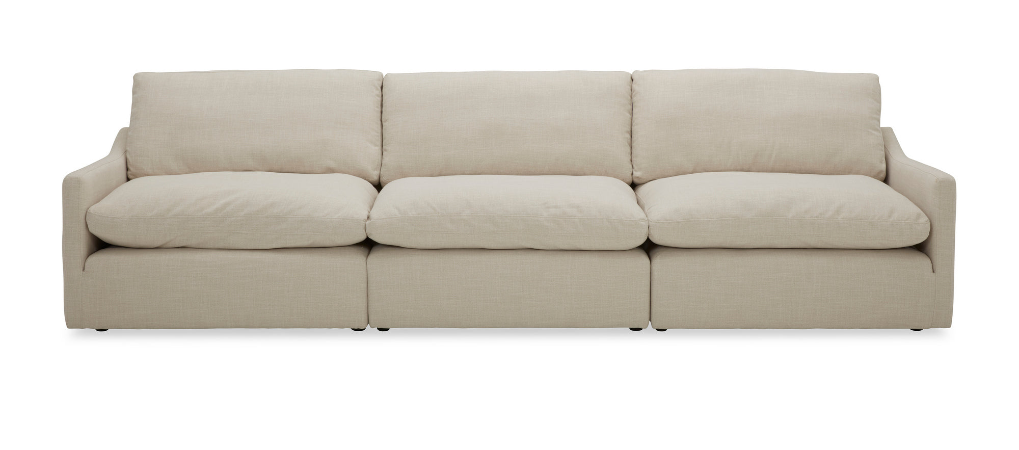 The Fedora Sectional is a stylish staple piece for your contemporary home. This farmhouse style sofa is upholstered in a white linen-like fabric that wraps the slim silhouette. The feather fill of the cushions offers extreme comfort while the removable covers offer the ability to wash your pieces and keep them looking clean for years. Perfect for your contemporary modern home.