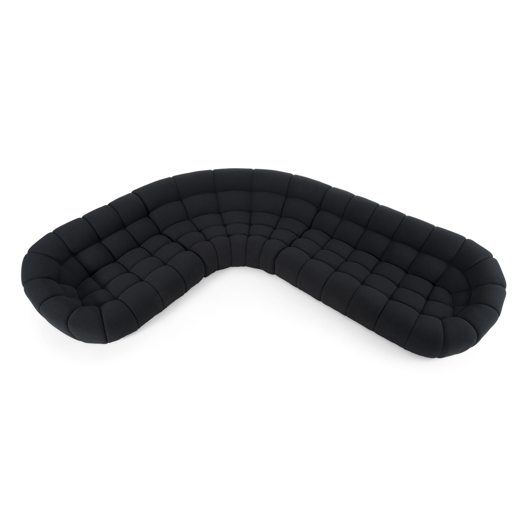 The Divani Casa Yolonda Black Fabric Sectional Sofa is a captivating ode to contemporary luxury, marrying sumptuous design with impeccable craftsmanship. Upholstered in plush black fabric, its hexagonal tufted seat and elegantly curved silhouette create a statement of opulence and comfort. Perfect for gatherings or quiet moments of repose, this sectional transforms any space into a sophisticated retreat, embodying a seamless blend of bold design and modern sensibility. It invites a sense of refined indulgence, making it a quintessential anchor for any stylish, modern living room.