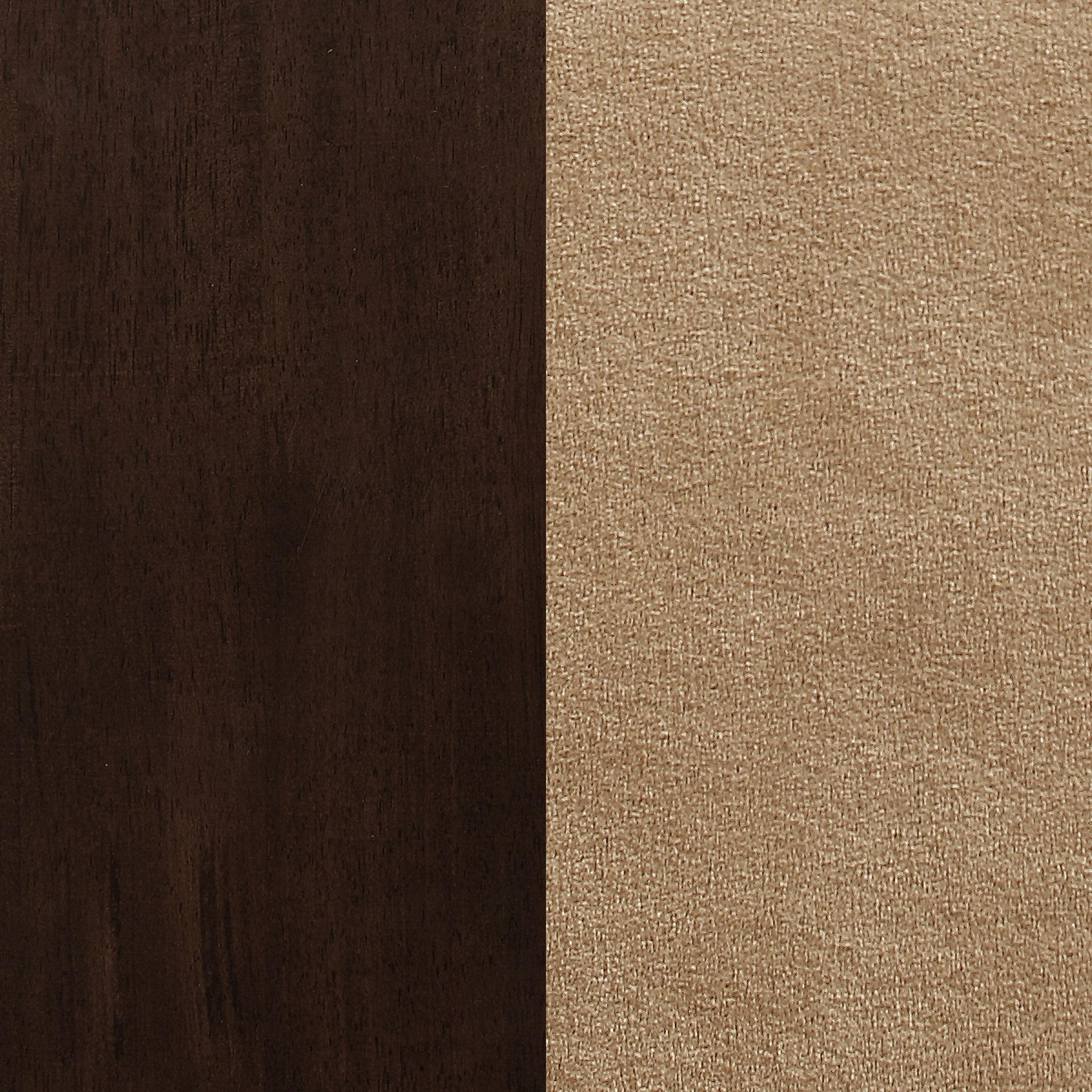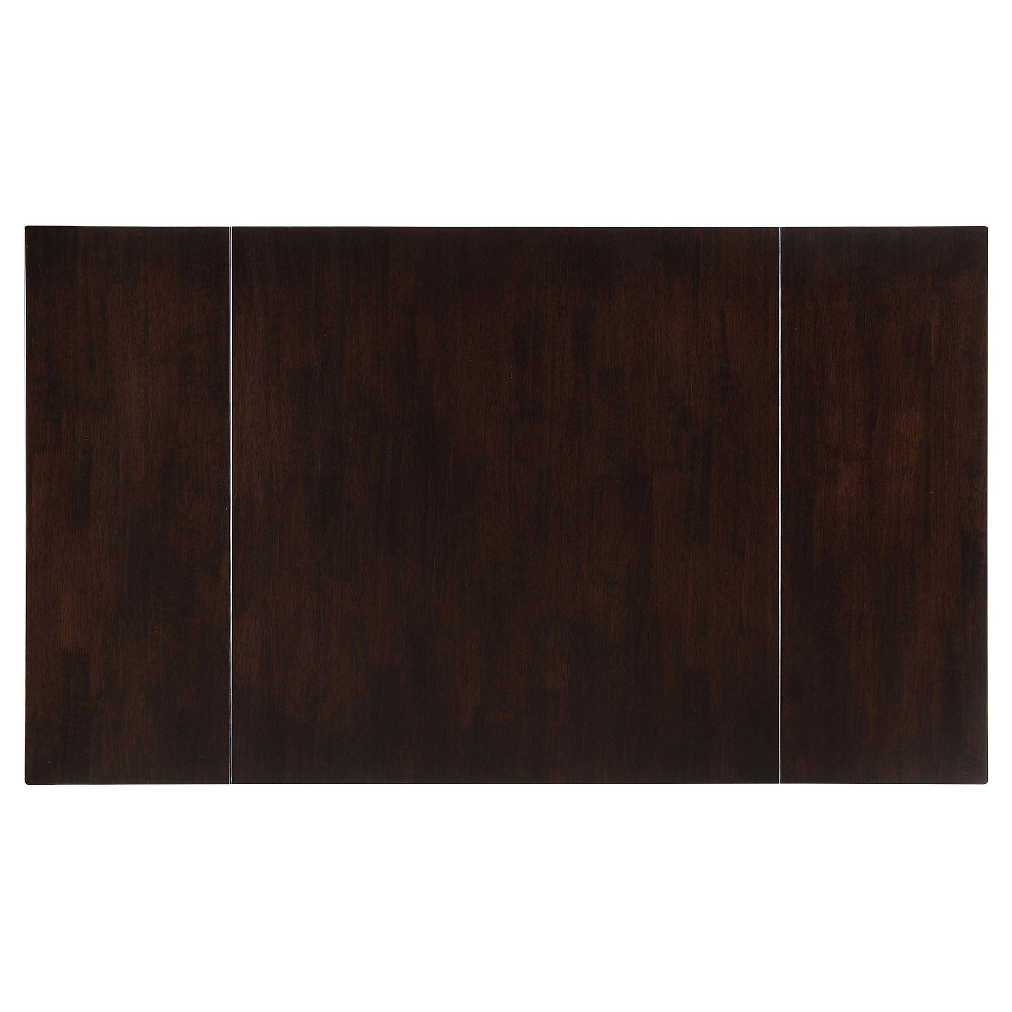 Maximize your dining space with this transitional three-piece dining set thats perfect for a breakfast nook or an apartment setting. The cozy set features a table with a drop-leaf extension and two (2) two-tone lattice-back chairs. The table is crafted with solid block legs and comes in a warm cappuccino finish. The stylish chairs are upholstered in a cushioned tan fabric and tapered legs with the same cappuccino finish as the table. Its a perfect set for a cozy gathering.