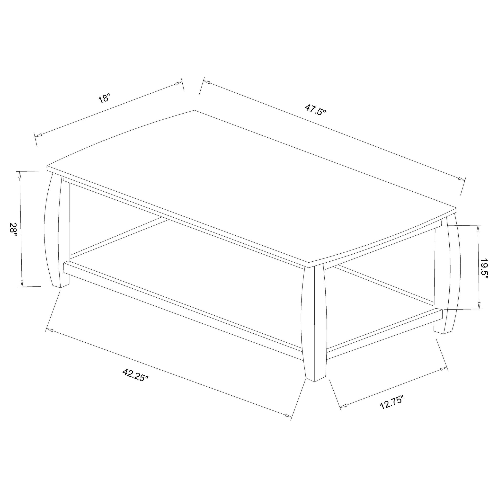 • 47.50"W x 18.00"D x 28.00"H