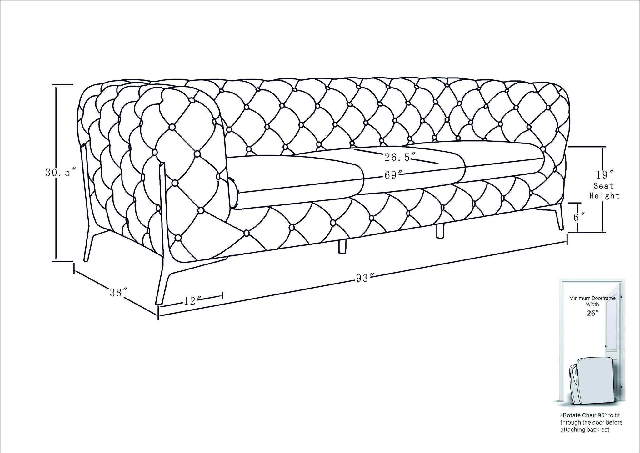 TOV - Kendall 90" Velvet Sofa - Light Gray
