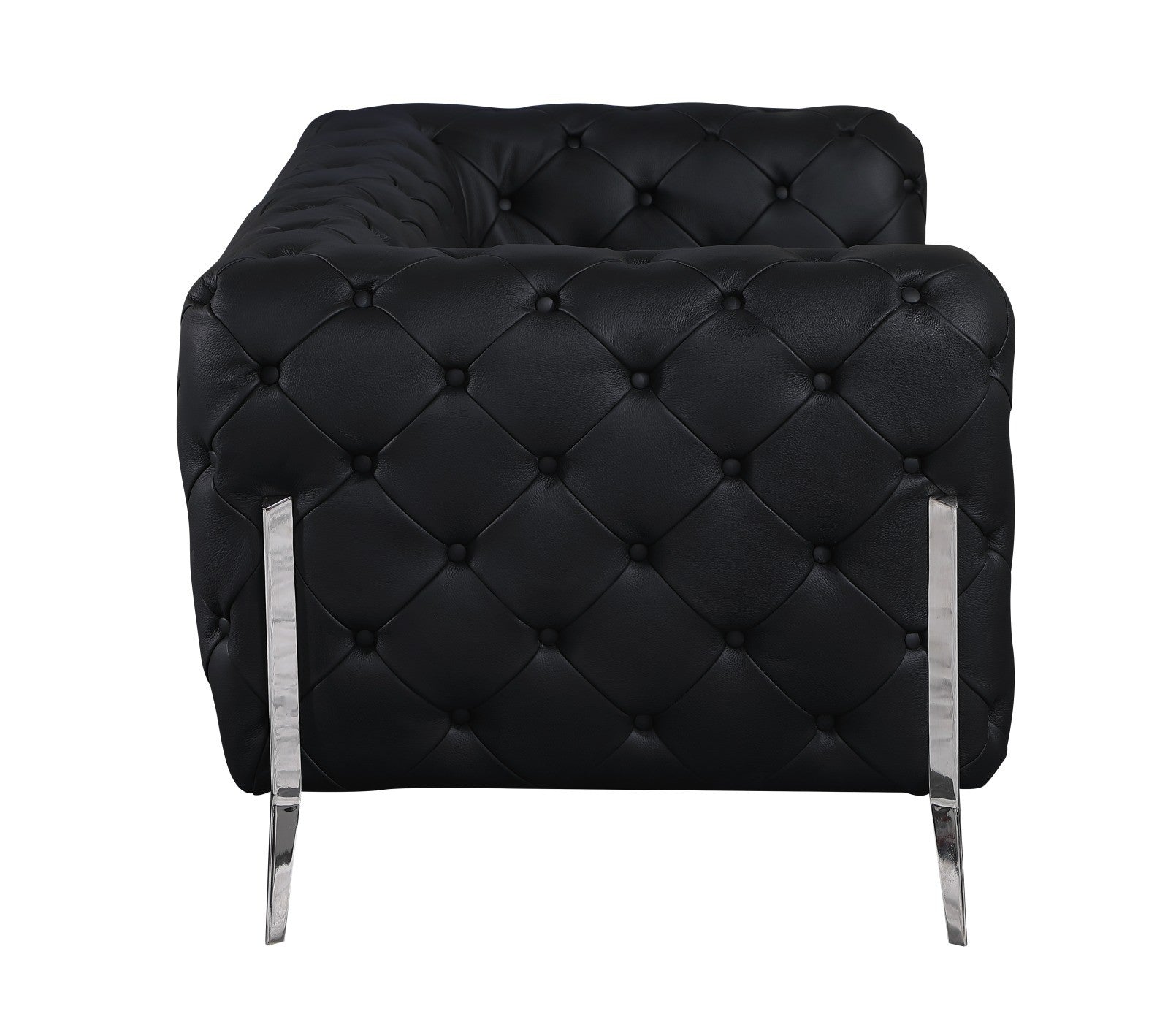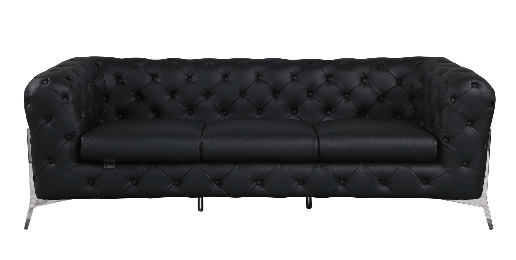 Elevate your living space with this 100% Top-Grain Italian Leather Sofa, designed to blend modern elegance with luxurious comfort. Its clean, minimal silhouette and bold contemporary styling make it the perfect statement piece for any modern home. The sleek stainless-steel chrome legs and trim provide a striking contrast to the rich Italian leather upholstery, adding a refined, high-end finish.