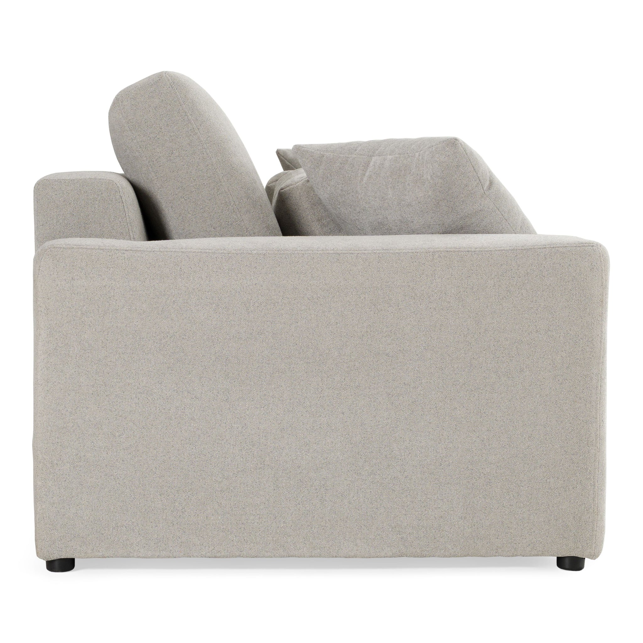 Bring modern elegance and everyday comfort to your living space with the Loki 4-Seat Sofa. Upholstered in soft, durable grey polyester fabric (AT8270-15), this sofa features a streamlined silhouette with square arms and a single seat cushion for a clean, contemporary look. The solid pine and engineered wood frame ensures lasting durability, while sinuous spring construction and plush foam fill provide superior comfort and support. Finished with black plastic legs and two coordinating throw pillows, the Loki Sofa arrives fully assembled and ready to elevate your home.