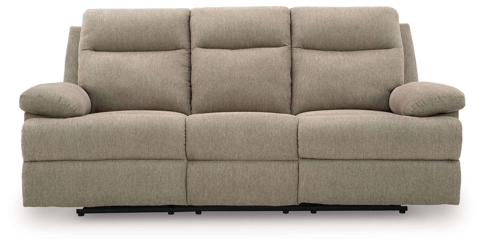 Fully upright or completely stretched out, this traditional-inspired reclining sofa caters to the art of relaxation. Super soft mocha-colored upholstery and sumptuous cushioning—made all the more indulgent with pillow top arms—cradles you in comfort from head to toe. A middle seat with a drop-down table, cup holders and USB charging takes comfort and convenience to another level.