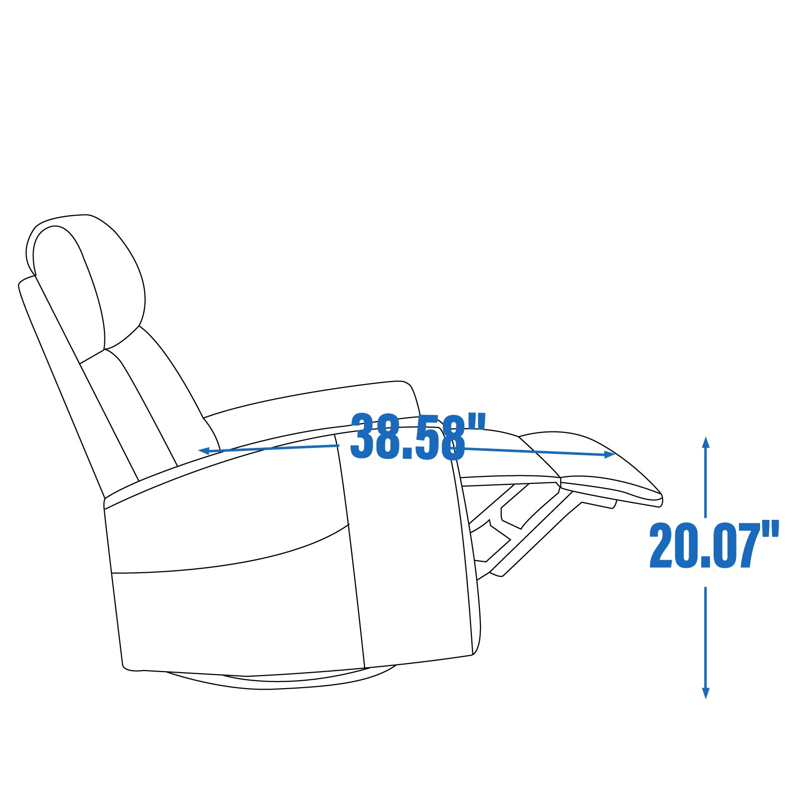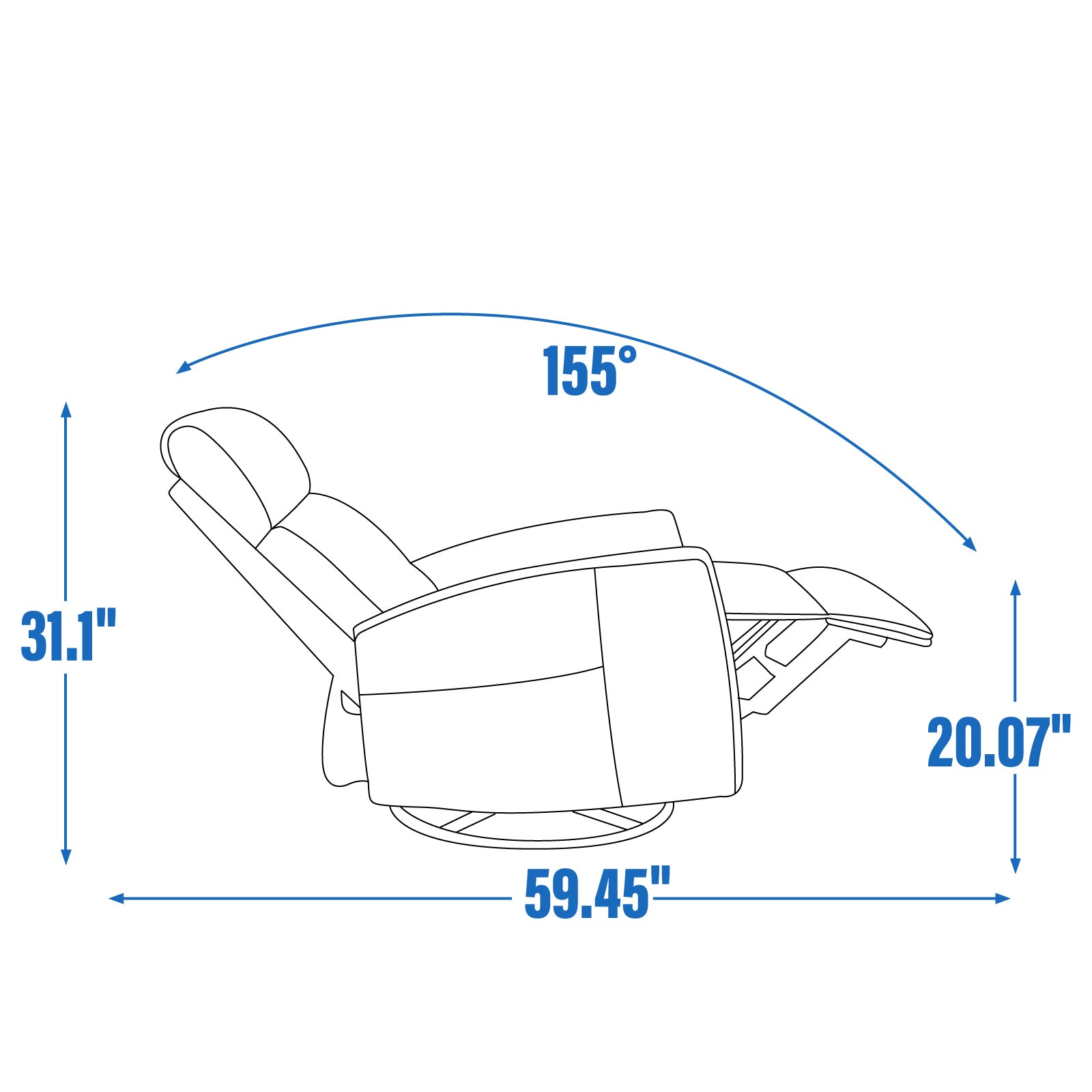 - 360°SWIVEL AND ROCKING RECLINER: The swivel recliner chair has a black metal base that allows for a smooth and gentle 360 degree swivel, and the function of rocking can also make you feel more comfortable and relaxed. You can pull the side button to control the recline of the recliner chair, which means you can get any position you want, it's reclining 155 degrees maximum.