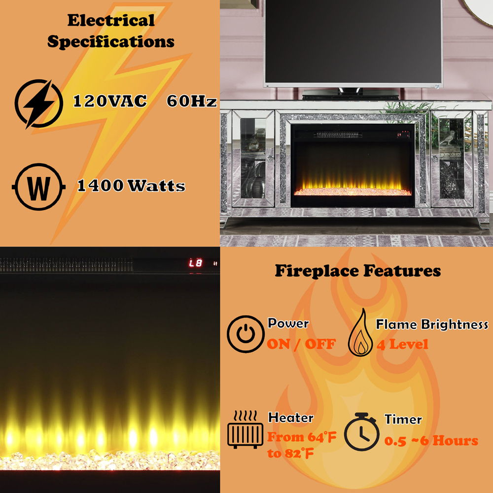 Noralie - TV Stand With Fireplace & LED - Mirrored & Faux Diamonds