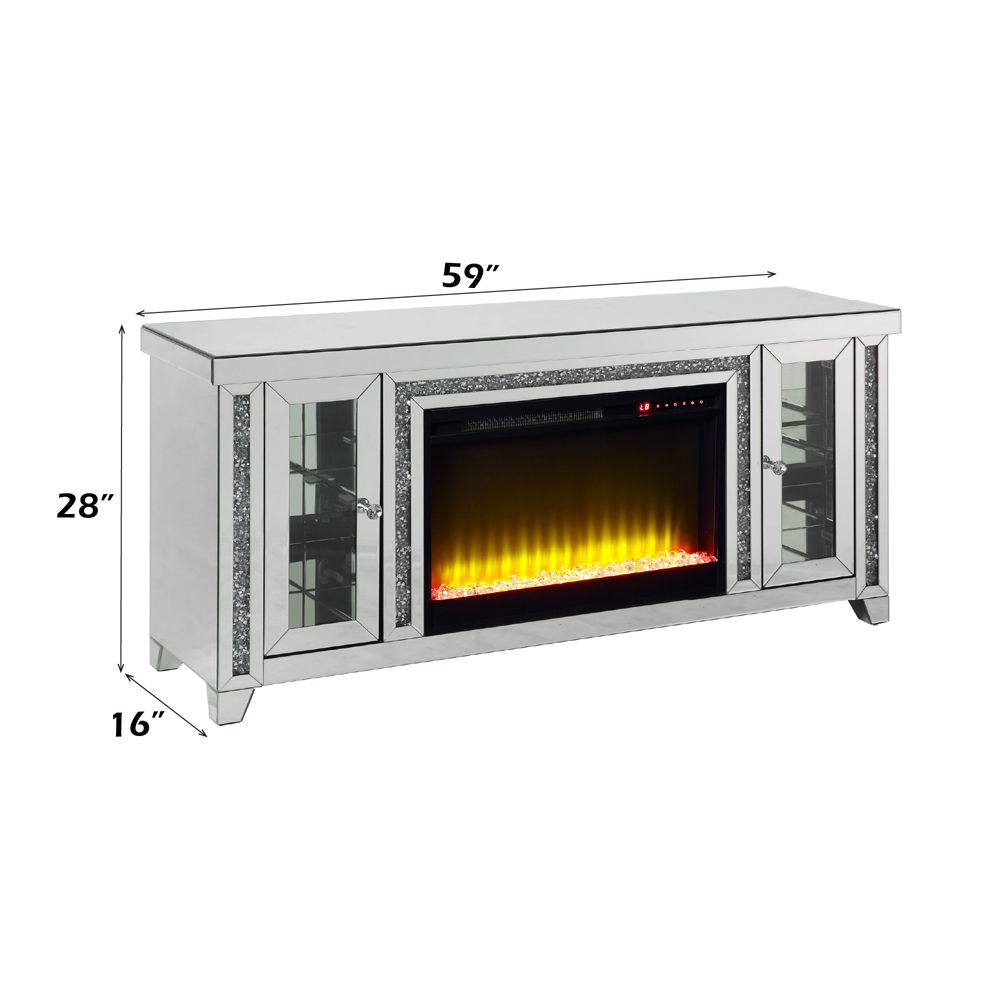 Noralie - TV Stand With Fireplace LED - Mirrored Faux Diamonds