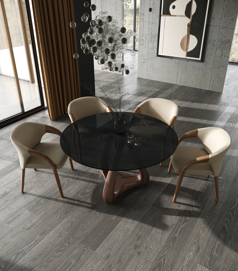Mason Modern Round Glass & Walnut Dining Table