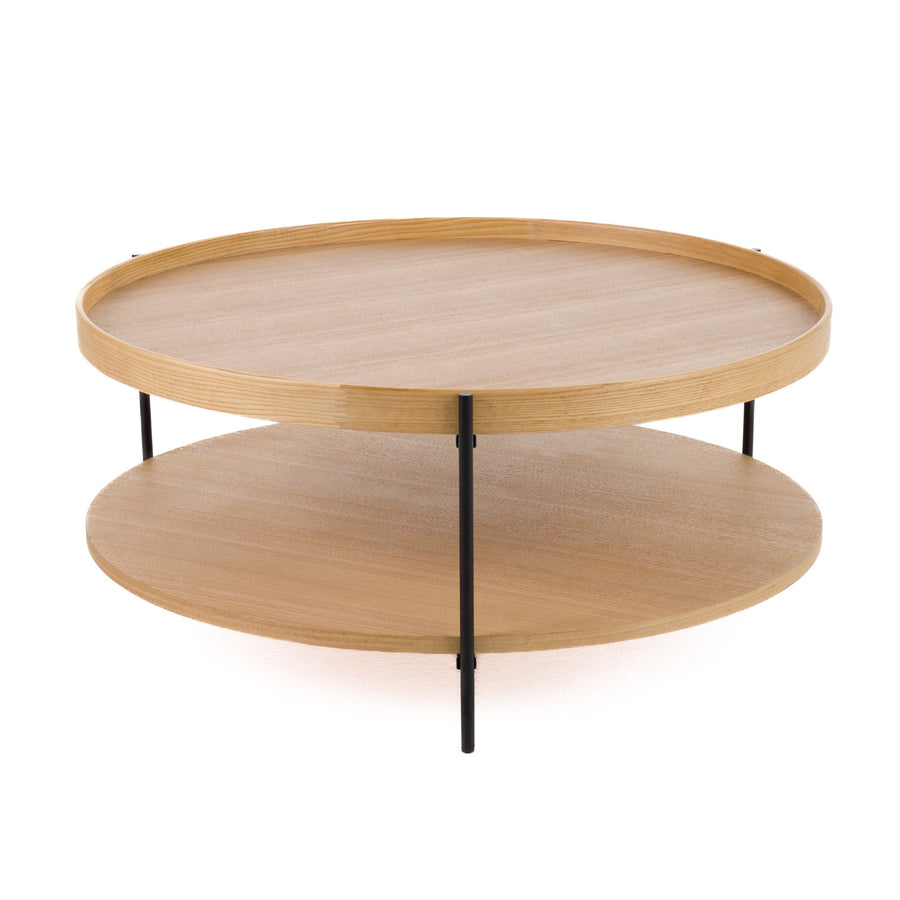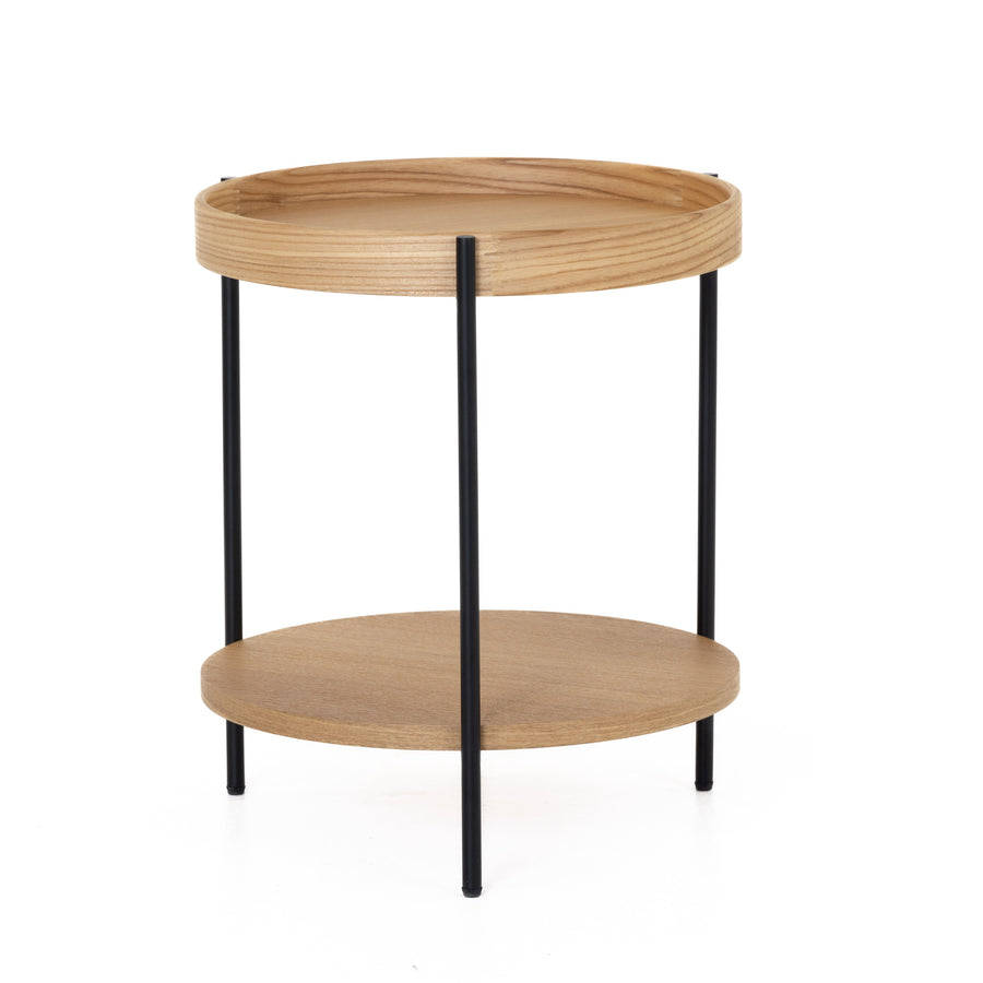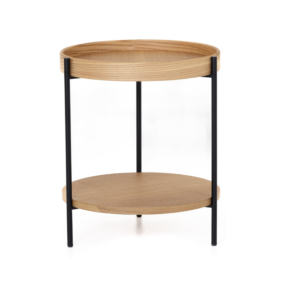 Sada Mid-Century Modern Beige Linen + Chestnut Round Ottoman