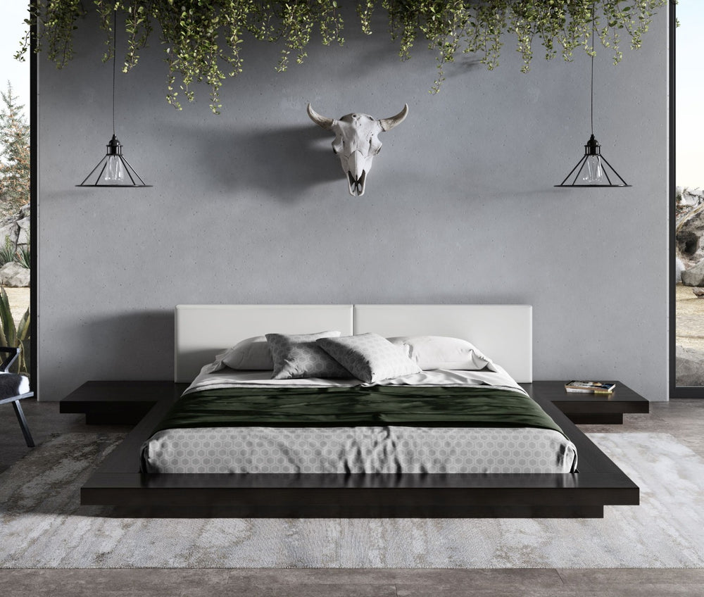 Tokyo Queen Contemporary Walnut and White Platform Bed