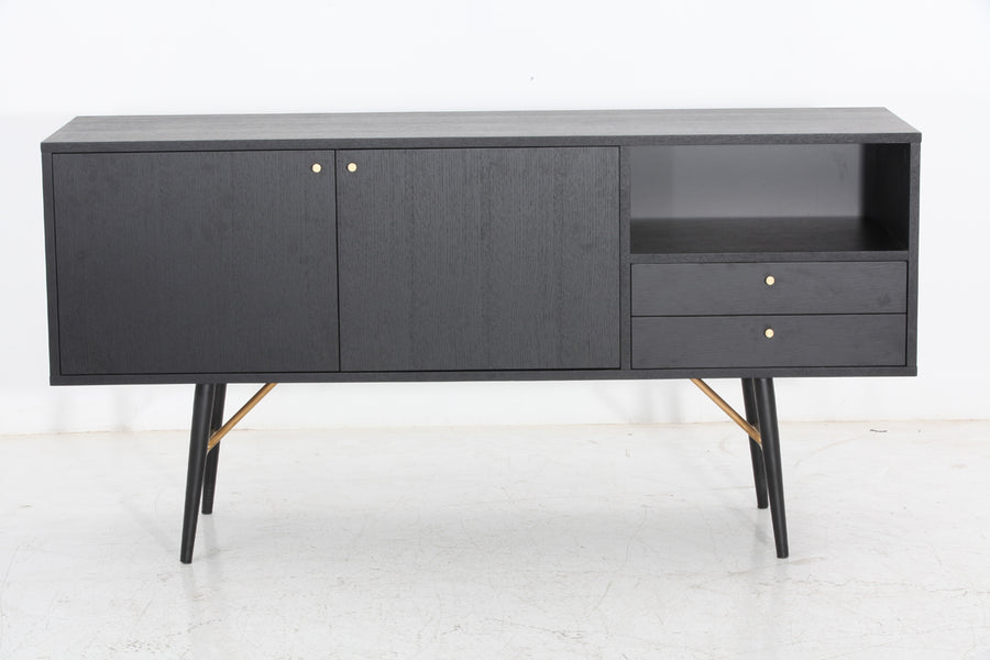 Bowie Mid-Century Modern Black Oak + Brass Buffet