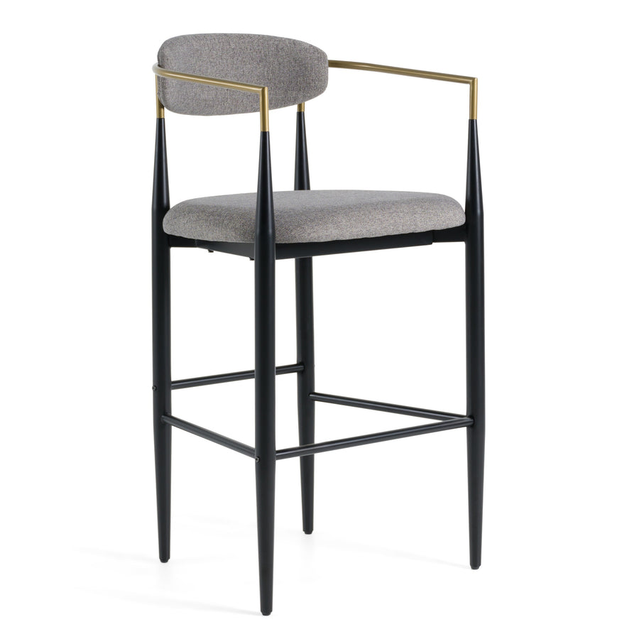 Burnham Contemporary Light Grey Fabric + Brass Counter Stool