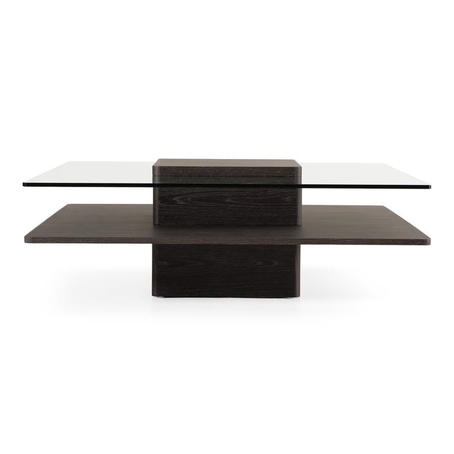 Clarion Modern Walnut & Grey Glass Coffee Table