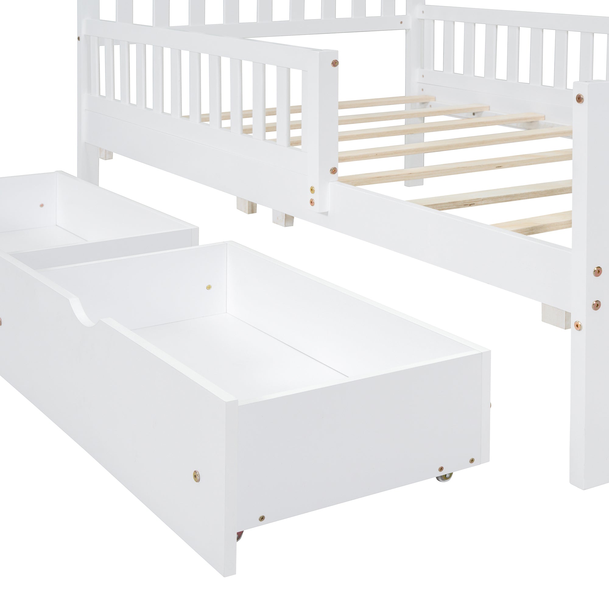 This Wood Platform Bed with Headboard and Footboard is a minimalistic, stylish bed frame that works well with a variety of decorating styles and makes it easy for you to enhance and improve your space. There are two large drawers under the bed, which can fully save your bedroom space. Featuring strong, solid pine wood and supporting slats, this bed is built to last, ensuring it will accompany you for many years. Do not miss the chance take it home today.