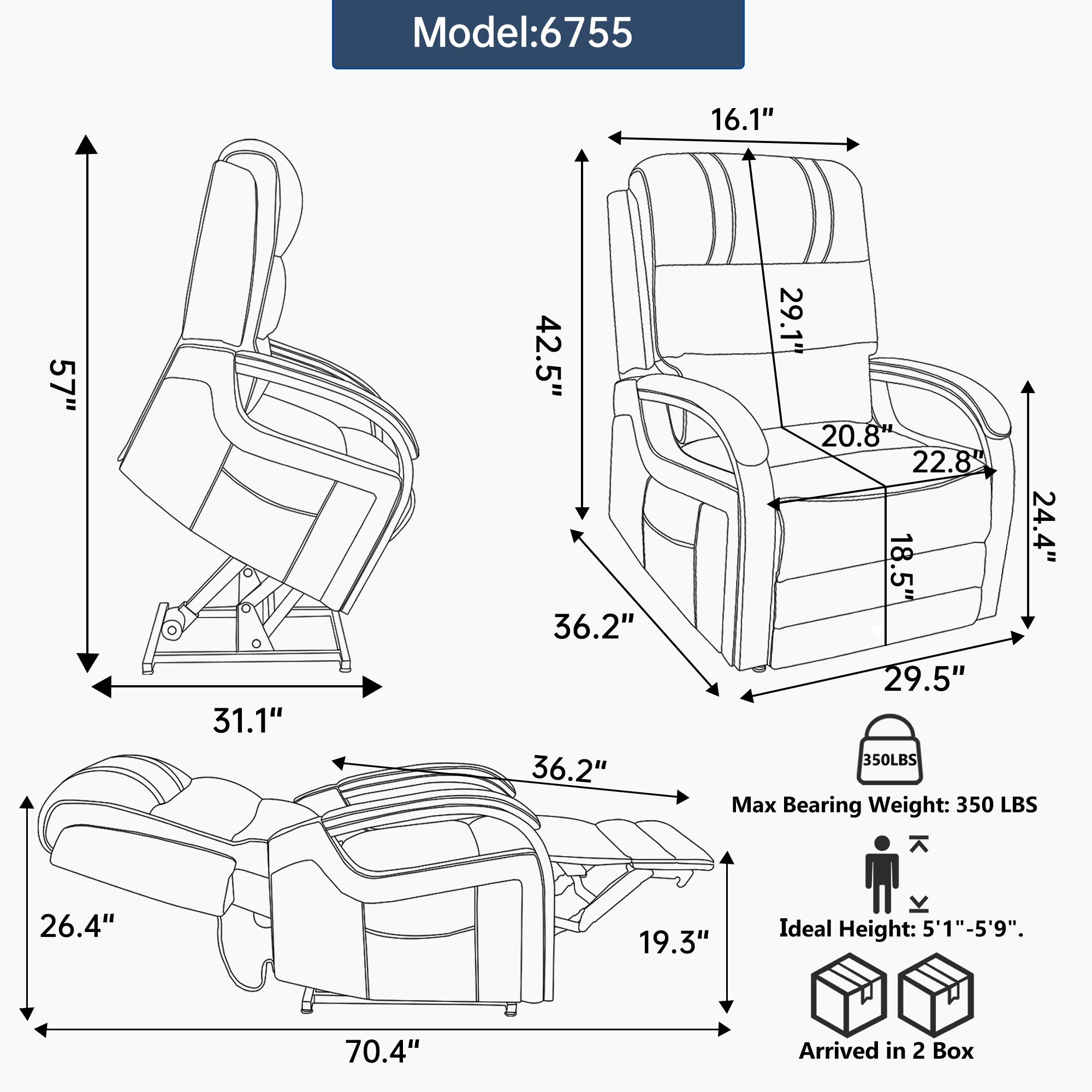 • Easy Assembly & Service: The lift recliner comes with 2 box, It takes only several steps to assemble this power lift chair and NO TOOLS. An instructional video on how to install the recliner chair will help you.Tips: If you have any concerns regarding your health, consult your doctor before using the product.