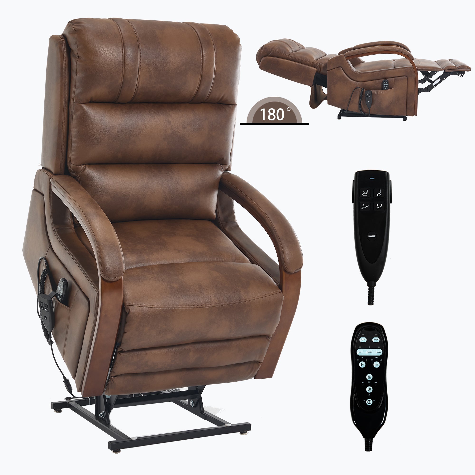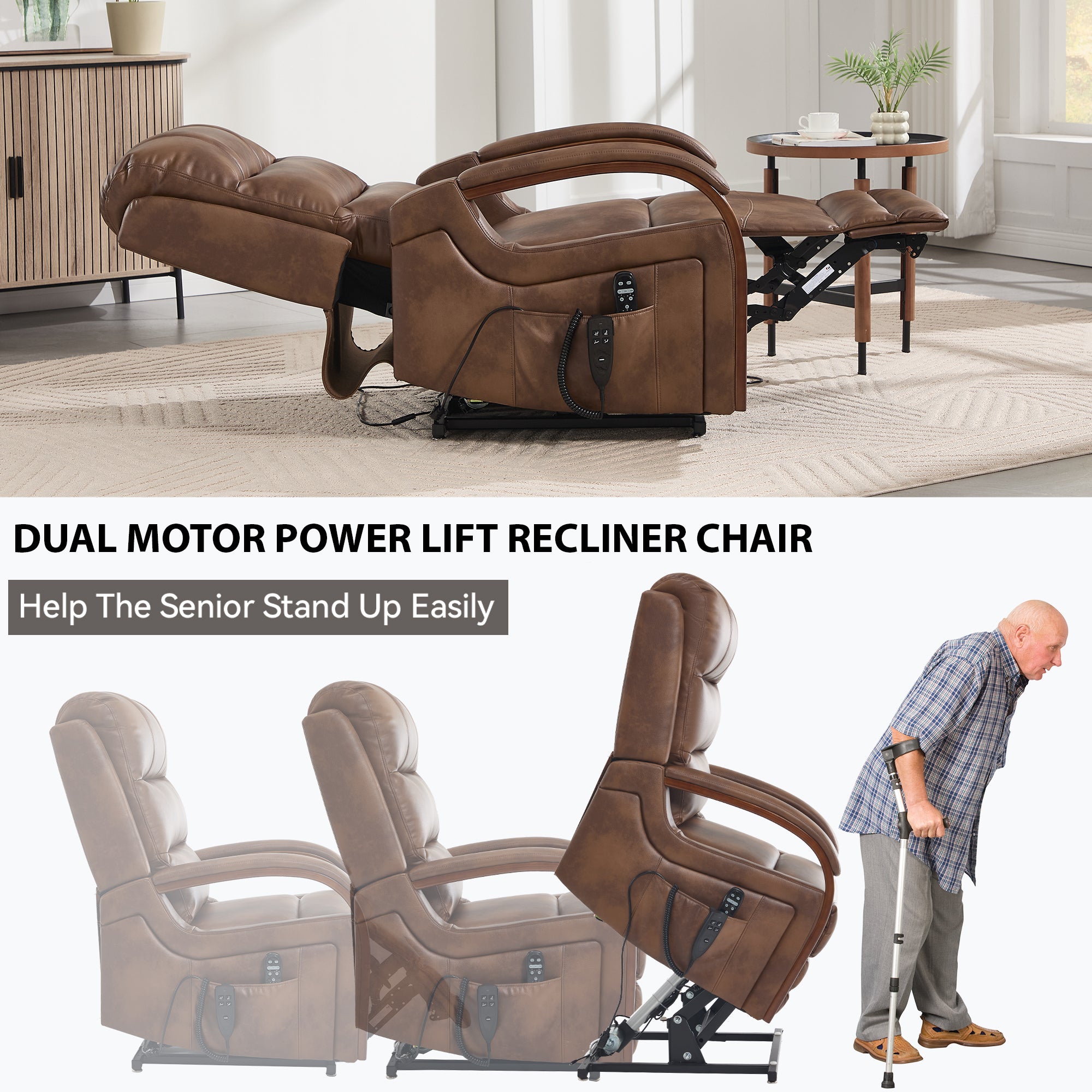 Power Brown Leatheraire Lift Recliner Chair Dual Motor Infinite Position Up to 350 LBS with Solid Wood Armrests, Heat Massage and Heavy Duty Motion Mechanism
