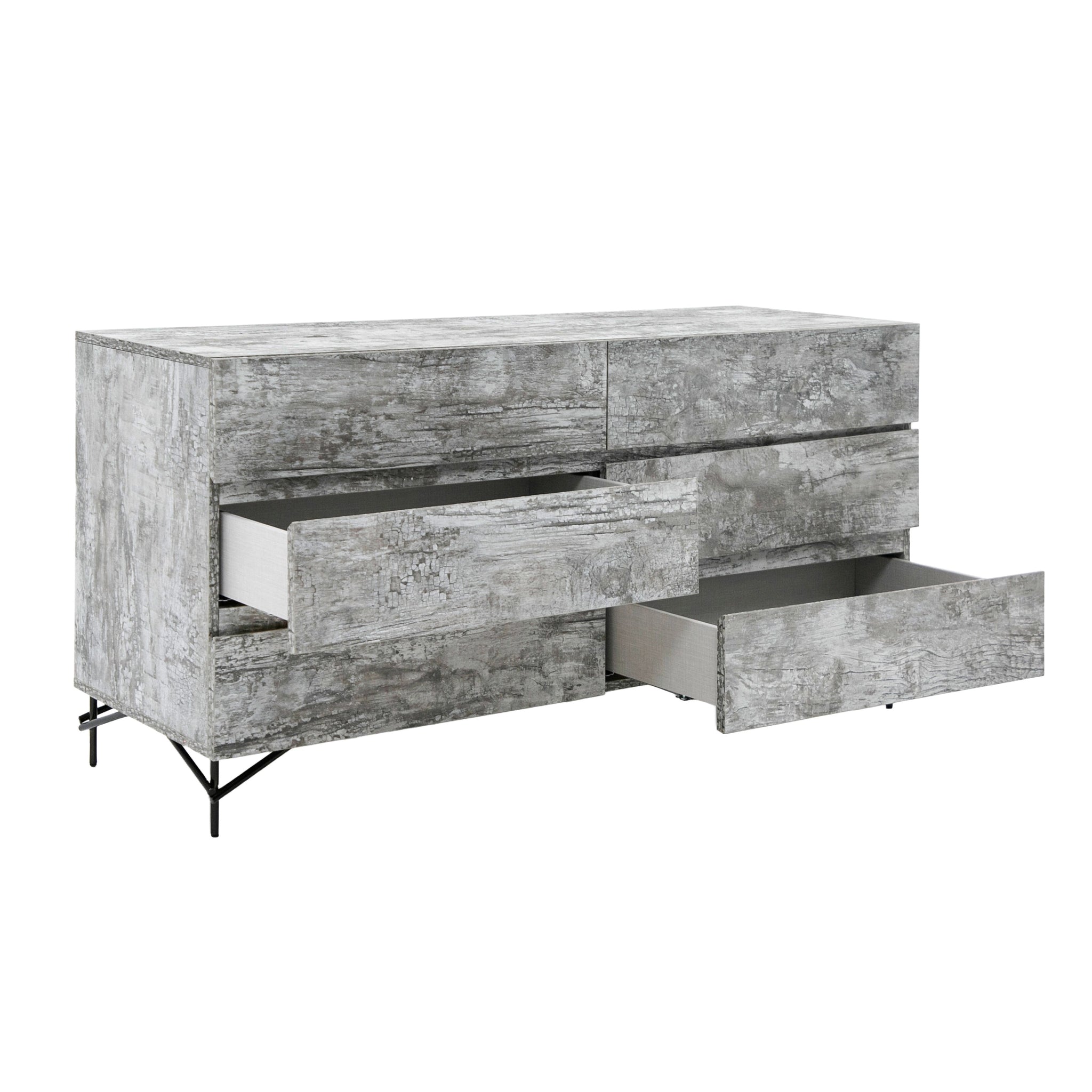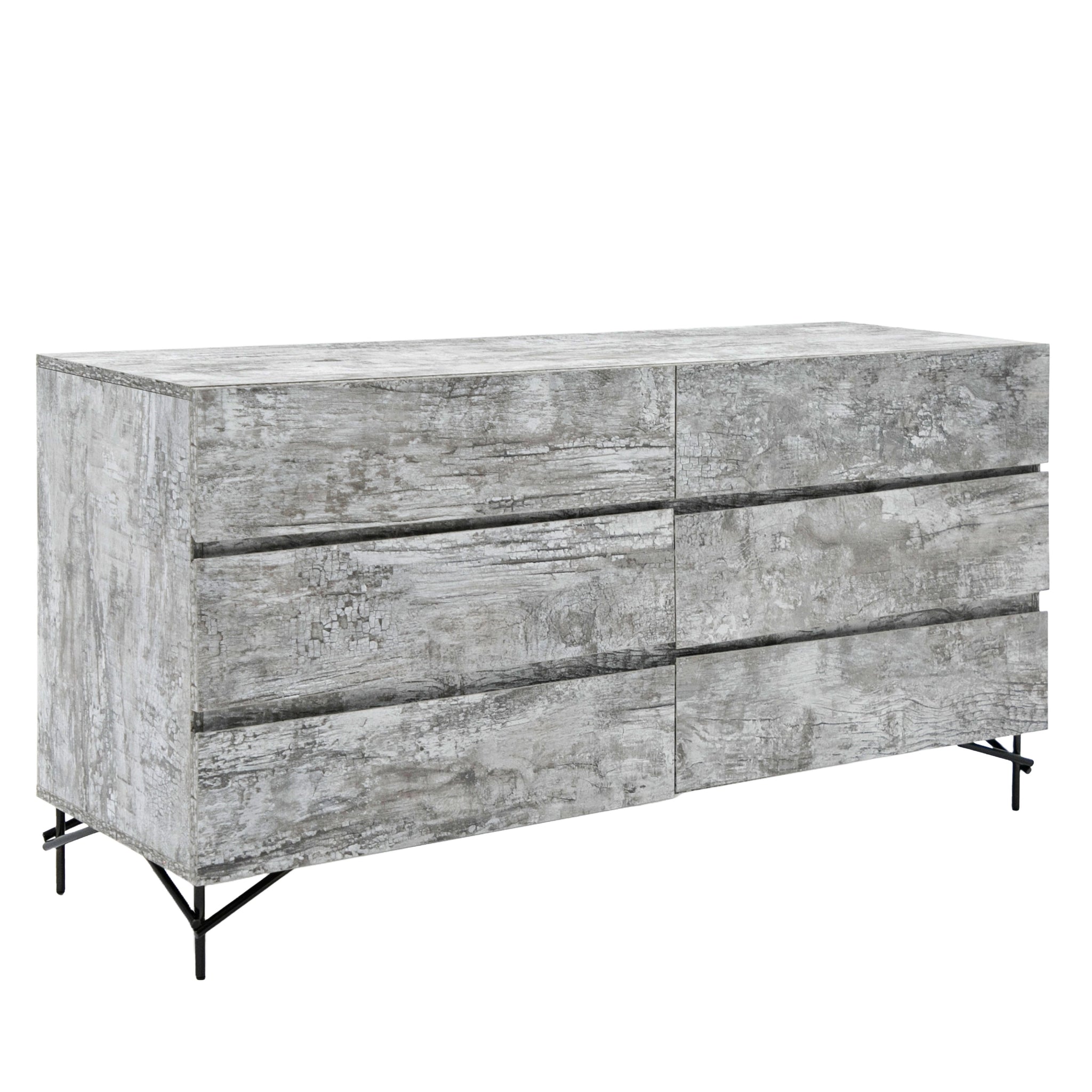 Our Modern Aria Collection is unique and comfortable. The rustic Tiger Wood finish is combined with black legs. The matching Bed is upholstered in soft Grey fabric. Made in Italy.