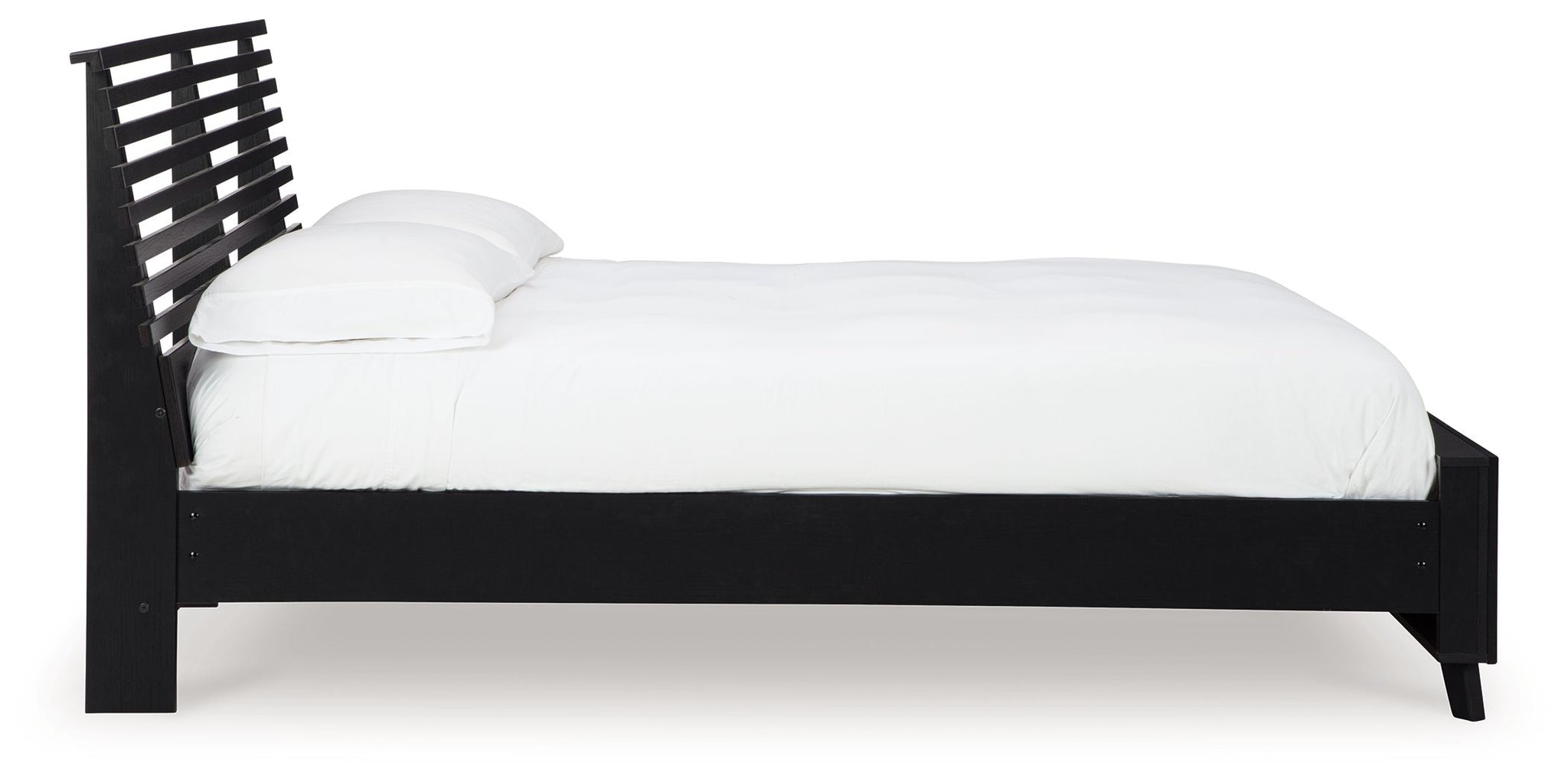 Sophisticated style for the savvy shopper. This panel bed prioritizes affordable, on-trend design. Its subtle replicated texture recalls the natural beauty of wood, highlighting the slatted styling. And a matte black finish savvily suits different approaches to modern aesthetics. Mix and match with light and bright hues, or pair with other dark tones for a moody look.
