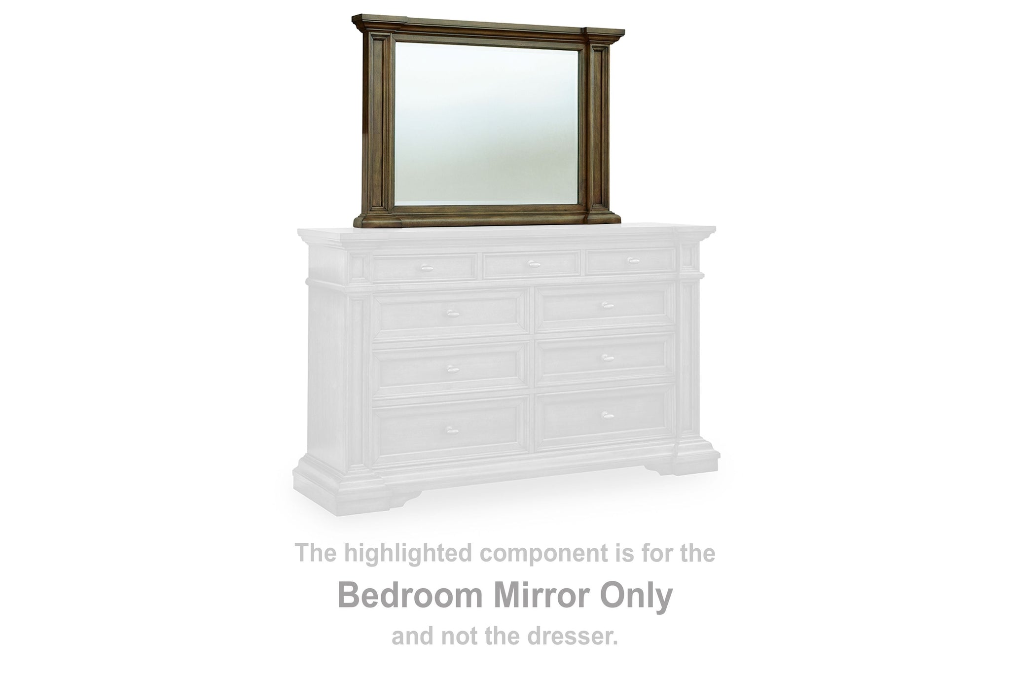 This bedroom mirror is made with solid wood. Pairs with other items in the series to make a dresser and mirror set.