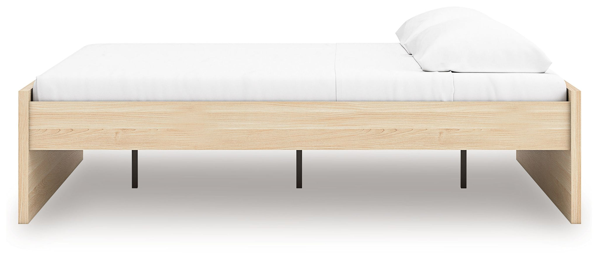 Create the modern bedroom of your dreams. This king platform bed offers a minimal design with maximum style, combining ultra-clean lines and a relaxed natural finish. It doesn't need a box spring or foundation, so you can splurge on a mattress that's sure to carry you away to a soothing place.