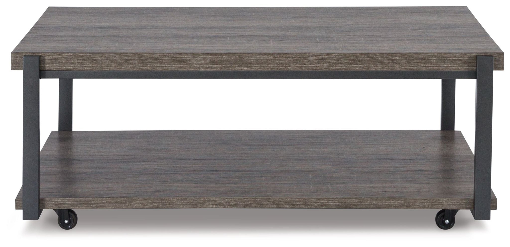A cohesive, casual contemporary ensemble. This table set is equal parts sleek form and routine practicality. If youre hosting guests or need space to stretch out in a recliner, rolling casters on the coffee table clear up extra floor space in a snap. Each table is outfitted with a lower shelf for chic storage and displaying decor.