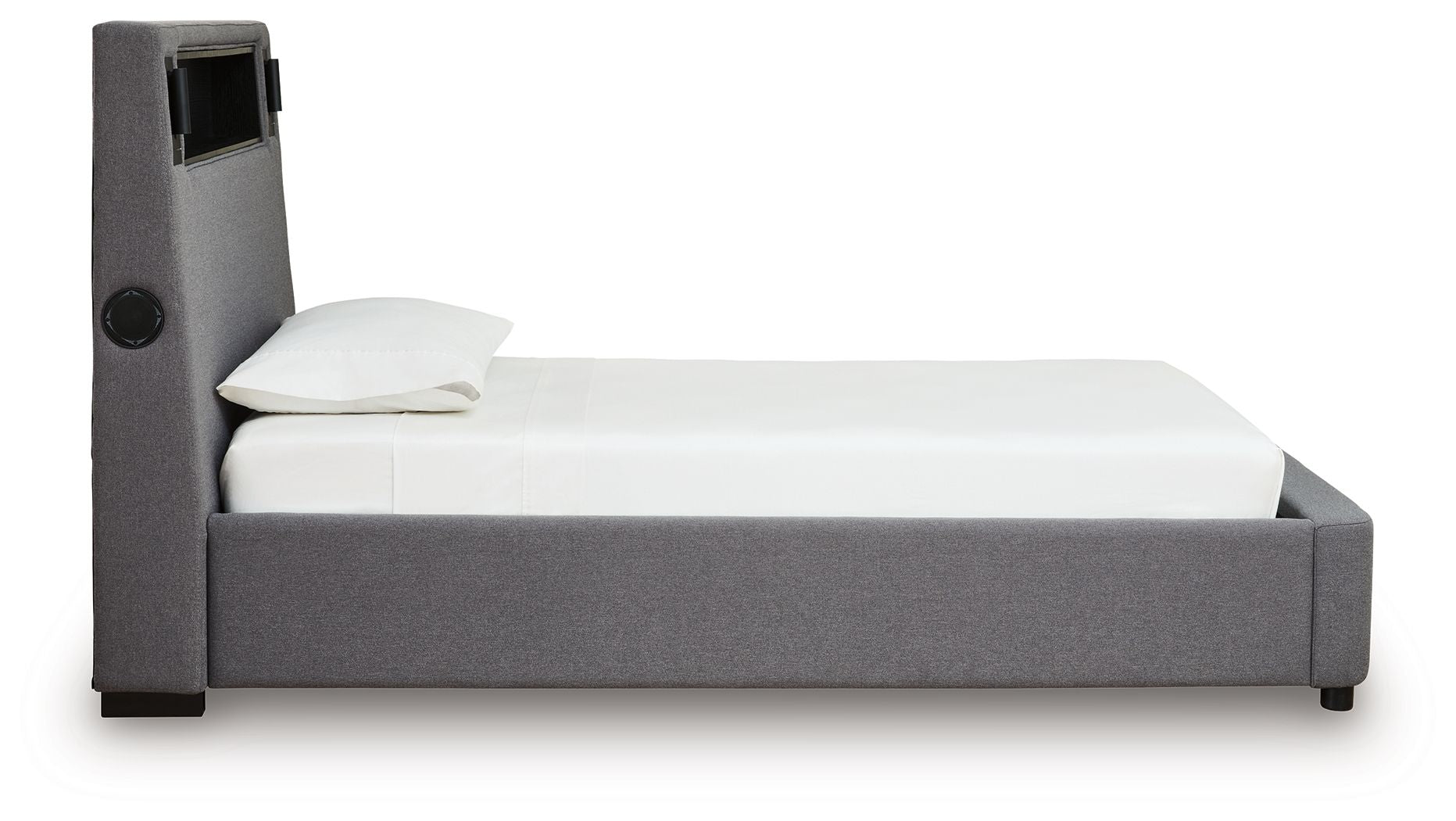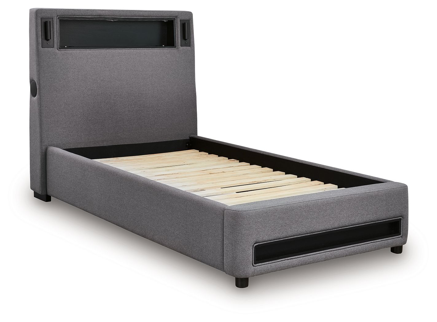 Snooze in style with this twin upholstered bed. It brings delightful function to winding down before bedtime, with an adjustable LED reading light on each side. And for added flair, multicolored ambient lighting brings an ultra-cool vibe to the overall look. Combining modern convenience with captivating design, this bed revamps your restful retreat like never before.