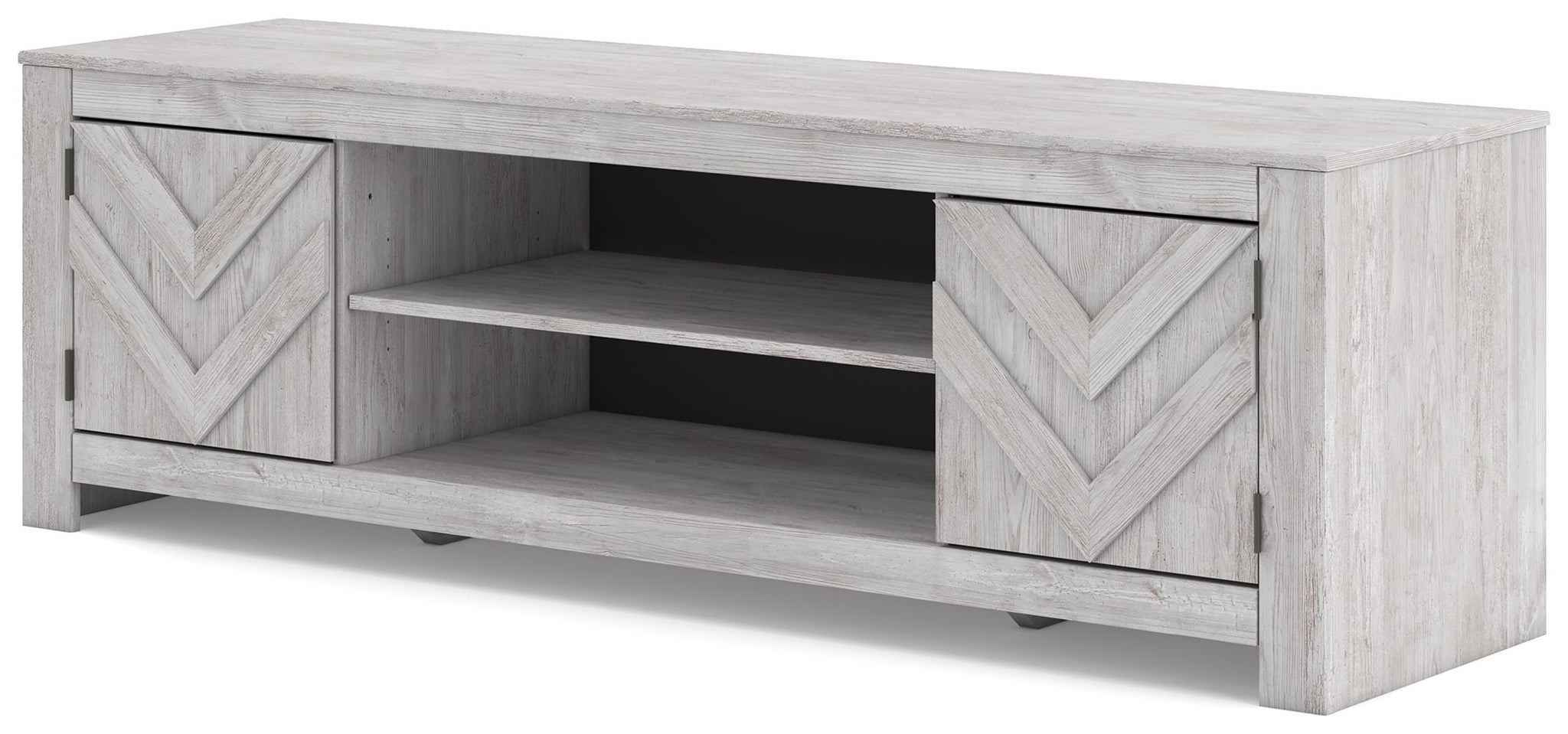 This TV stand embraces a classically charming aesthetic and repurposes it for modern living. Its whitewash replicated paint appeals to your love of vintage character, while the chic chevron pattern is effortlessly on trend. And with hidden storage behind the doors, your media accessories stay tucked away in style.