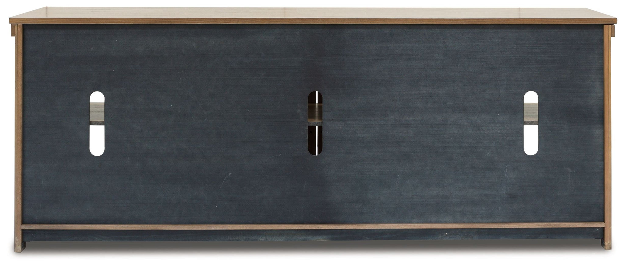 Elevate your entertainment experience with this TV stand. A functional focal point for your living room, it’s defined by a richly versatile finish. Instantly upgrade game days and movie nights—the large-scale silhouette easily hosts flat screens. And with stunning glass front doors revealing ample storage, you can sleekly show off decorative details, DVDs or records.