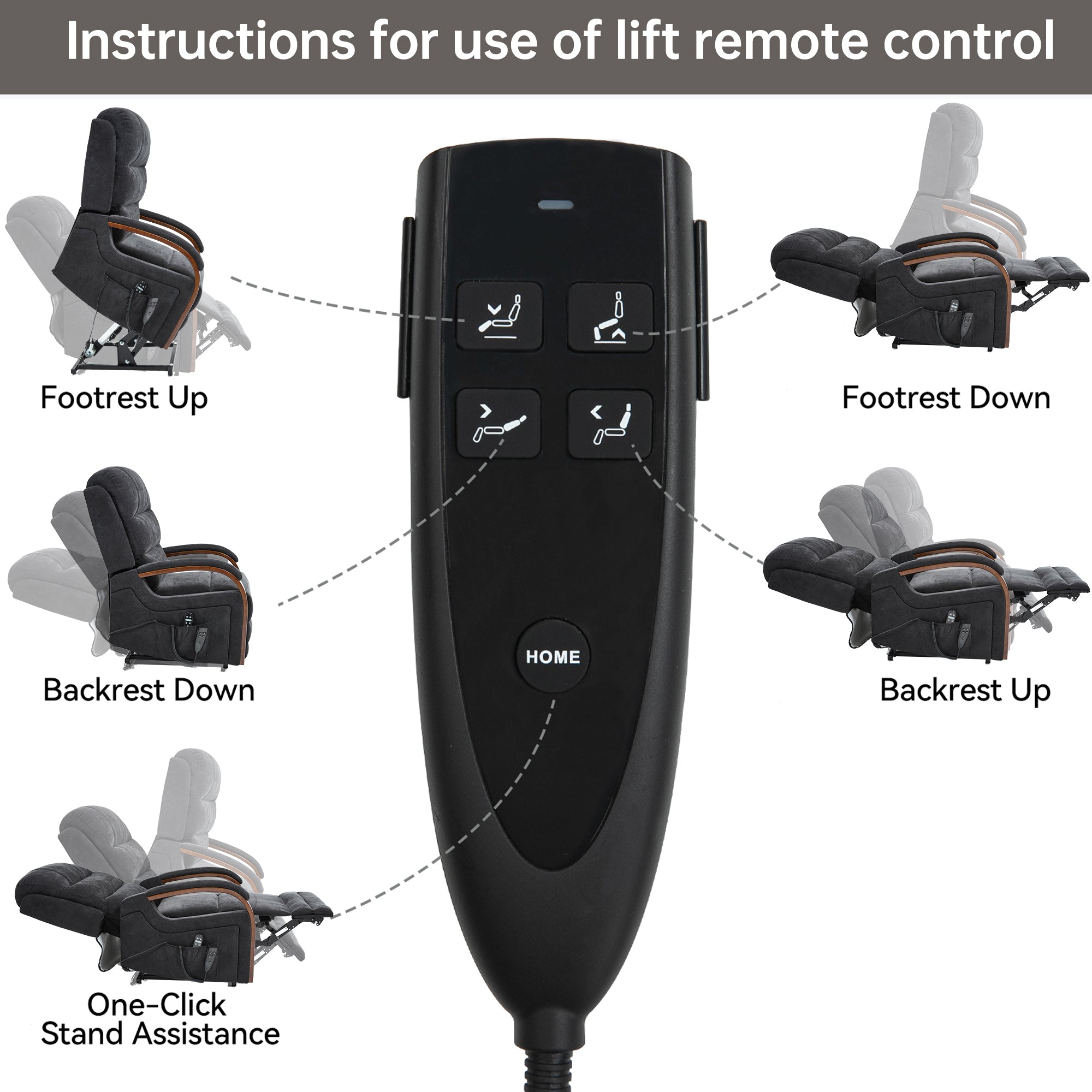 - Power Lift Recliner Chair: You can press the power-remote to control the lift or recline of the recliner chair, which means you can get any position you want, whether it's reclining 180 degrees or lifting. Because the lift chair is powered by electric dual motor mechanism, it can push the entire chair up and the chair can work smoothly and silently to help the elderly stand up easily. It's also ideal for people who have balance problems with legs or back, or who after surgery.