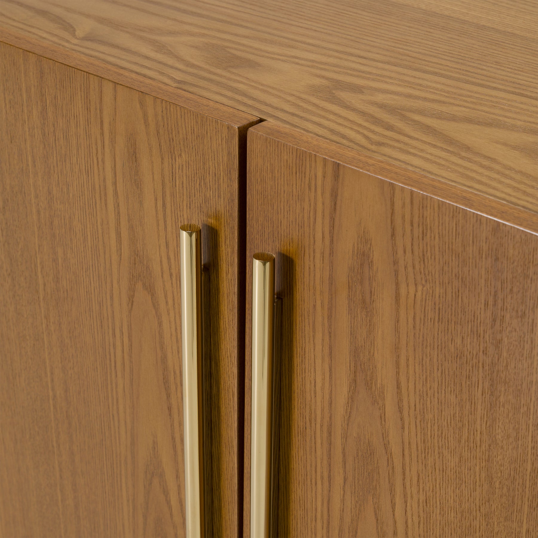 Out to turn your dining room into a smart and organized area is the Modrest Bernard Mid-Century Modern Walnut & Gold Buffet. Exhibiting a streamlined design, it features a lustrous Walnut Veneer finish with alluring wood streaks. Equipped with four cabinets that have glass shelves inside, this rectangular buffet gives you ample storage space for fine china and other dinnerware. Gold stainless steel door handles and accents make this modern buffet a convenient furniture piece. Conical shaped legs with ‘X' supports provide sturdy support.