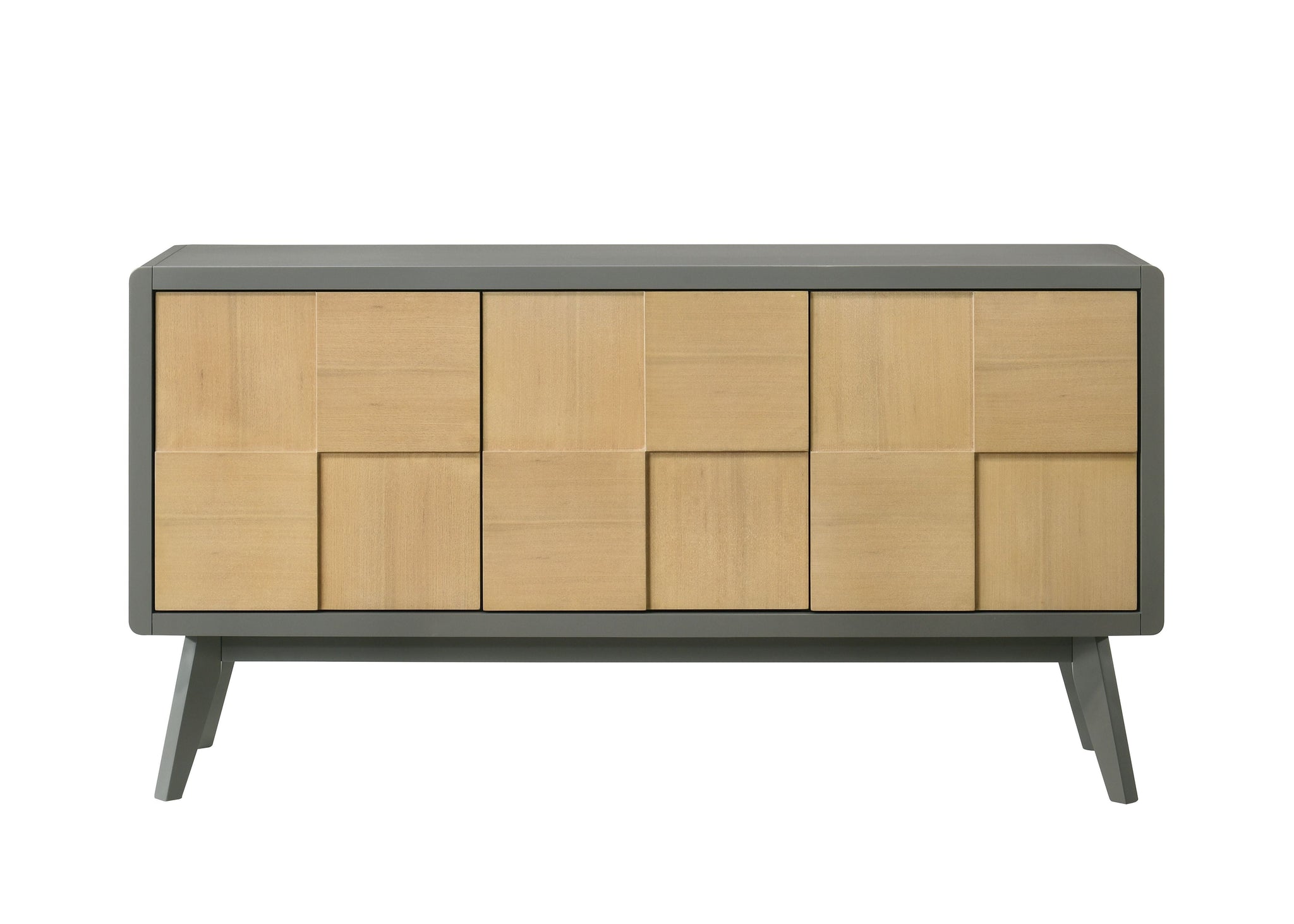 • Server Features: The side server boasts a 2-tone finish with KD legs, wood, composite wood, and veneer construction. It includes three doors with shelves and a weight limit of 100lbs on top and 60lbs per shelf.