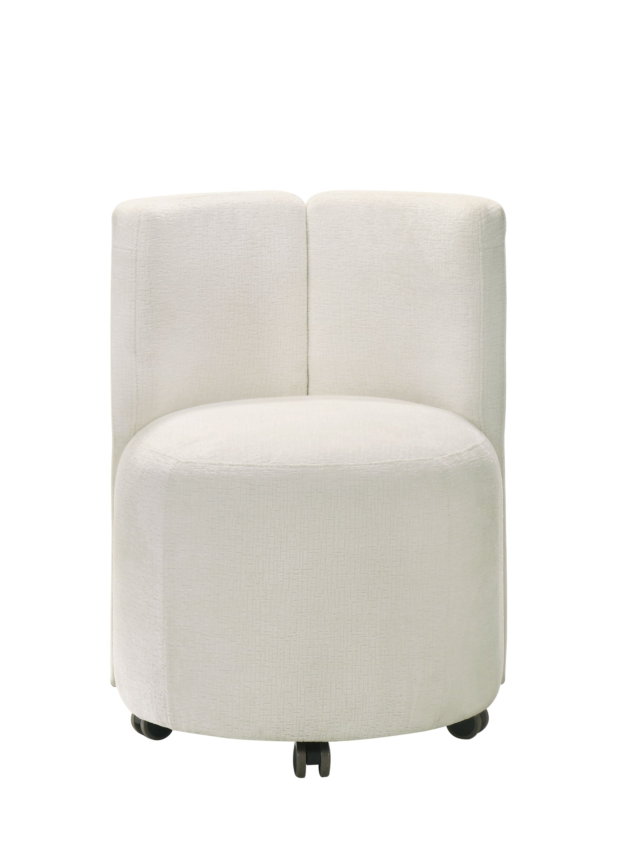 • Chair Specifications: The upholstered side chairs feature a seat width and depth of 20", a seat height of 19", with a foam density of D20/D22, and 5 wheels for easy movement. They support a weight capacity of 220lbs.
