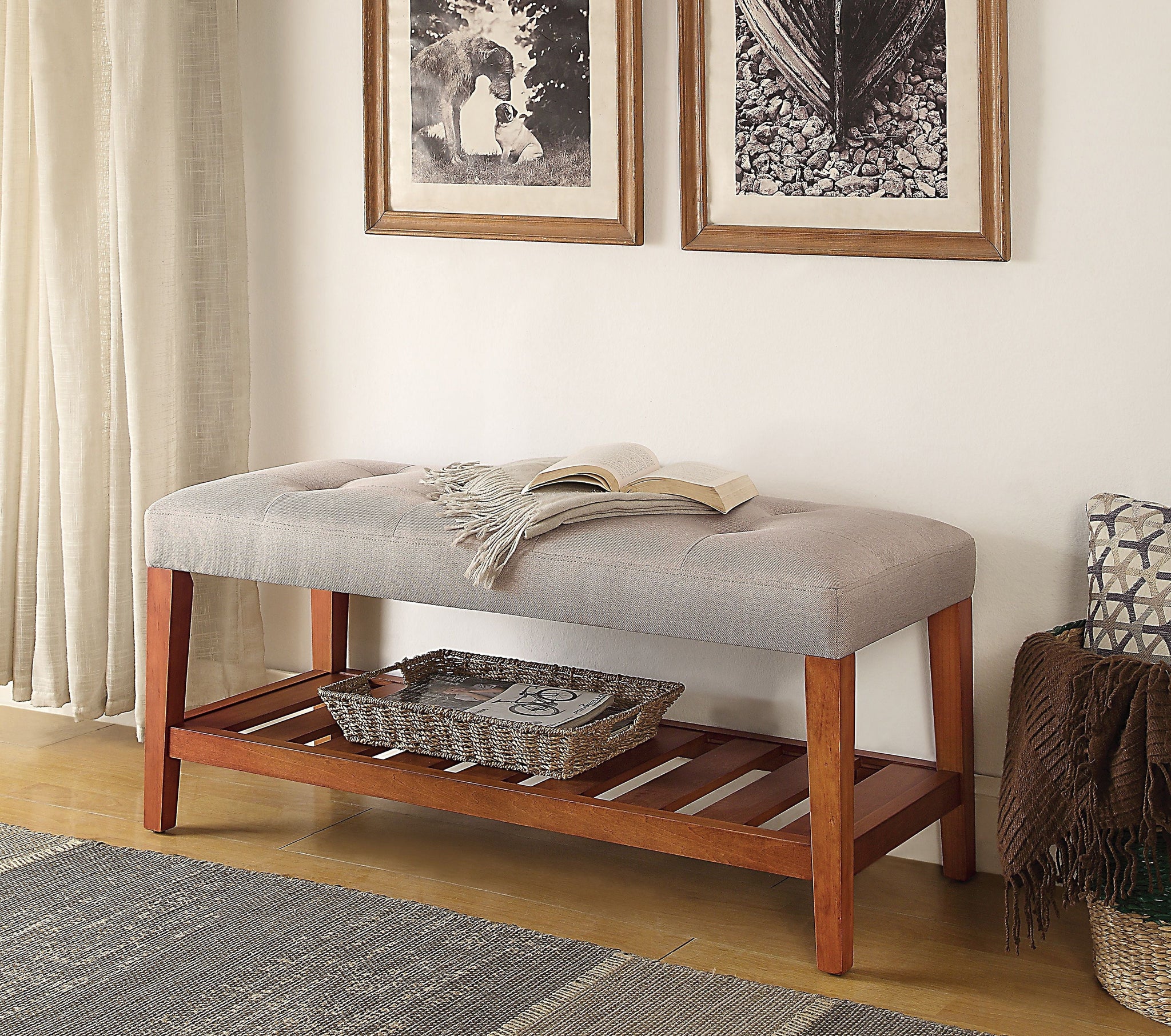 - Functional Storage: The open compartment beneath the seat includes a wooden slatted shelf, ideal for storing shoes, blankets, or decorative items. The shelf measures 40"L x 16""W x 8"H, providing ample space for various storage needs.